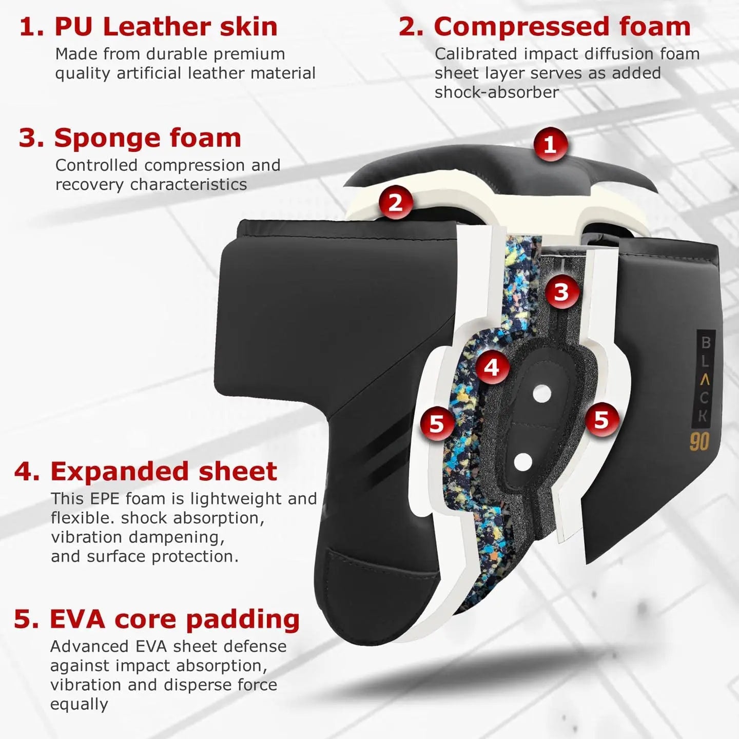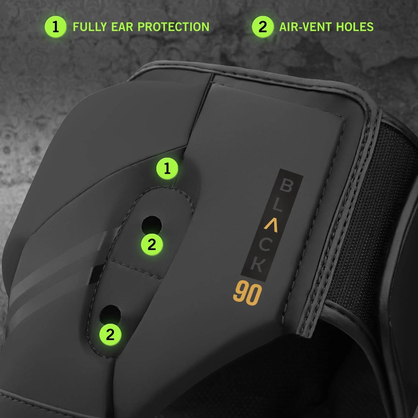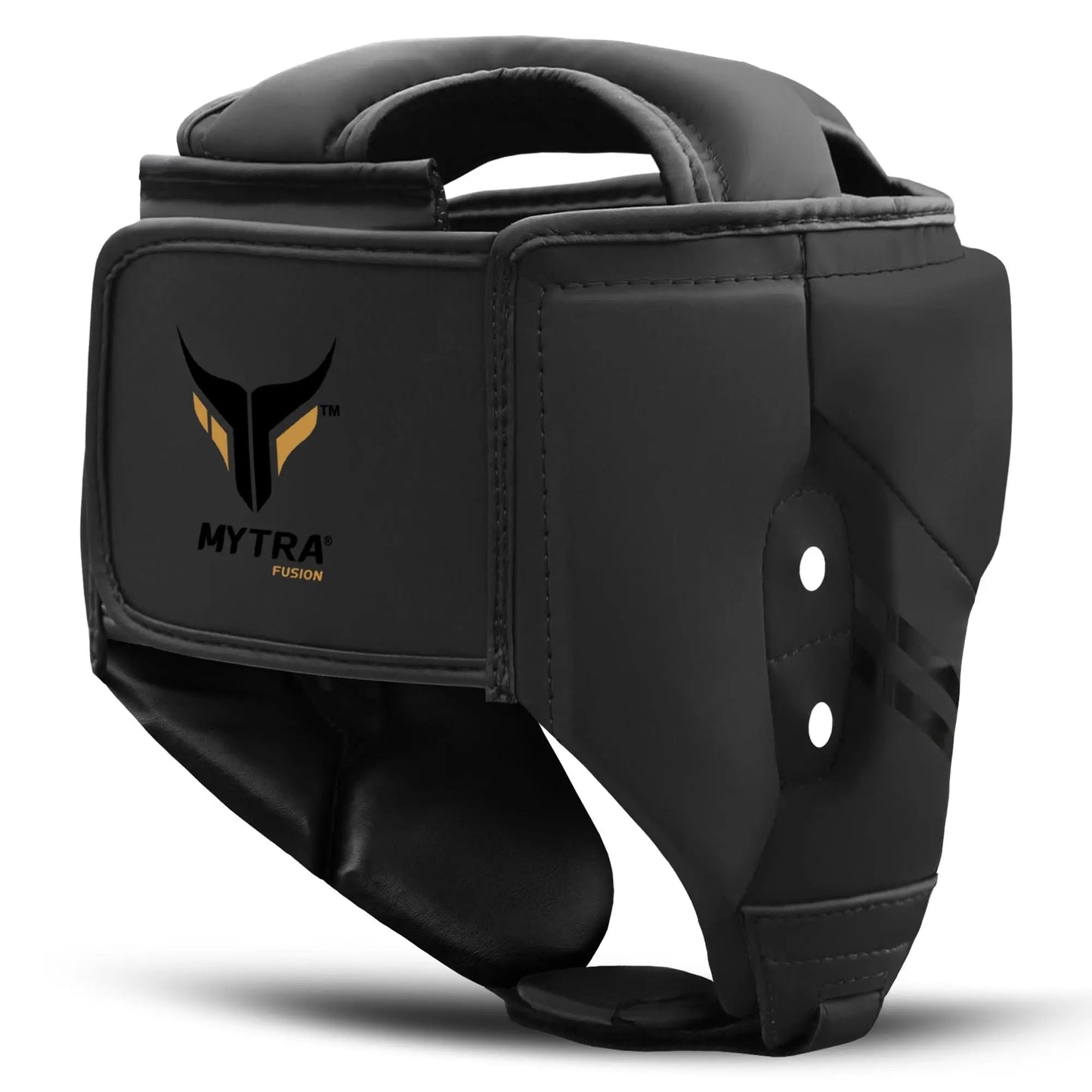 - 【 FINEST QUALITY MATERIAL 】 Mytra Fusion Black-90 Model boxing helmet series are manufactured of Finest Quality Faux Leather material. These sparring gears offer complete mouth and ear coverage as well as specifically designed for safety head protection.