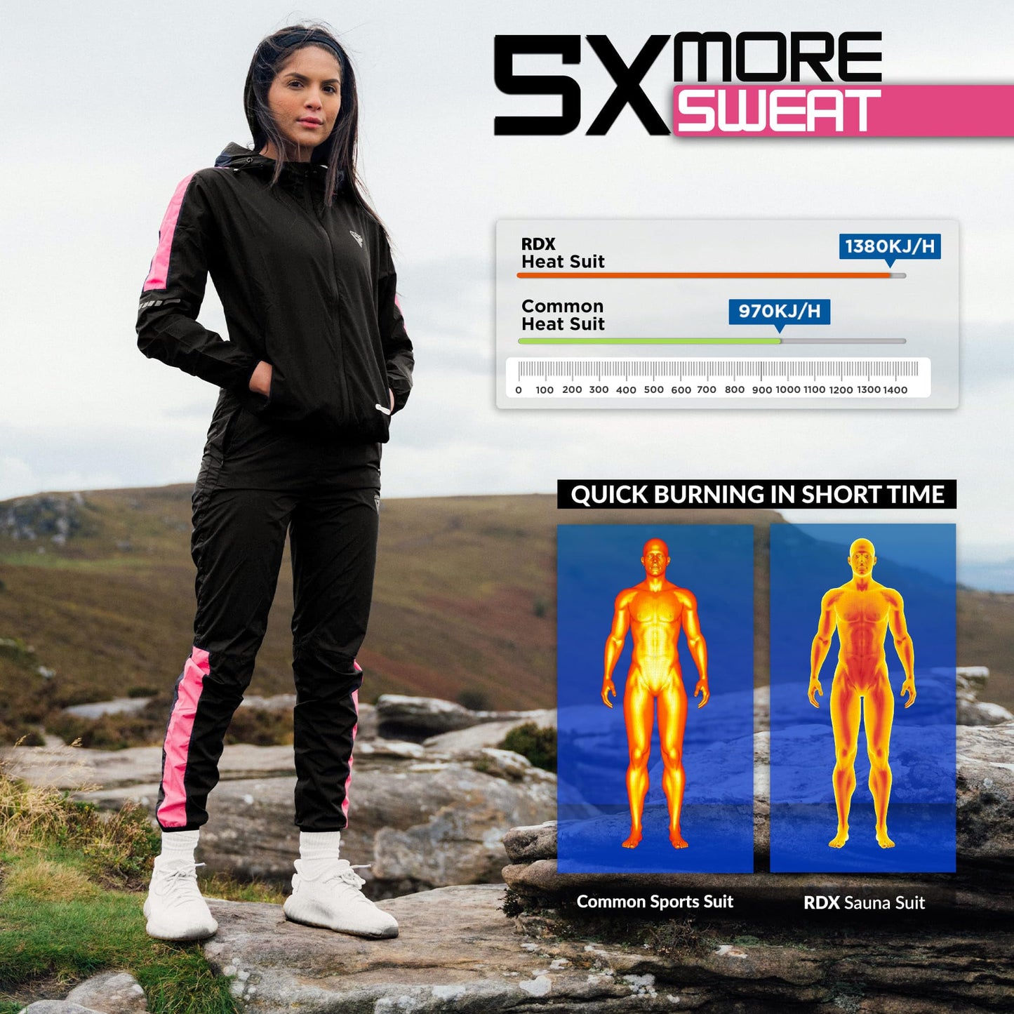 - RAPID SWEAT ENHANCEMENT AND WEIGHT CUTTING–Struggling with slow workout results? Transform your exercise routine with the advanced RDX heat retaining women’s sauna suit, designed to significantly increase sweating. This suit helps achieve the sweating effects of long intense workout in a shorter amount of time! Making it ideal for rapid water weight reduction. It’s crucial for athletes and boxers who need quick results, and equally beneficial for women aiming to shape and enhance themselves!
