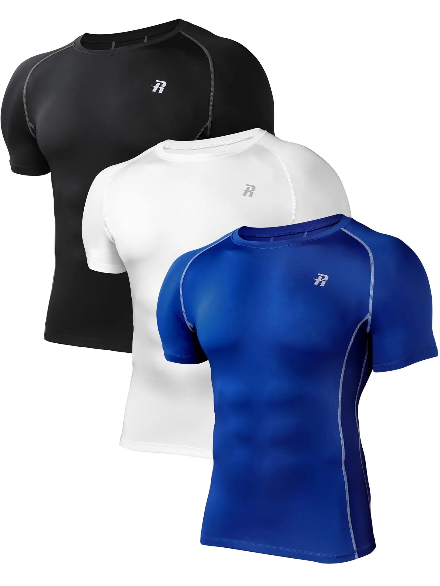 Runhit T Shirts for Men 3 Pack Compression Shirts for Men Rash Guard Running Athletic Gym Short Sleeve T-Shirts Tee Tops