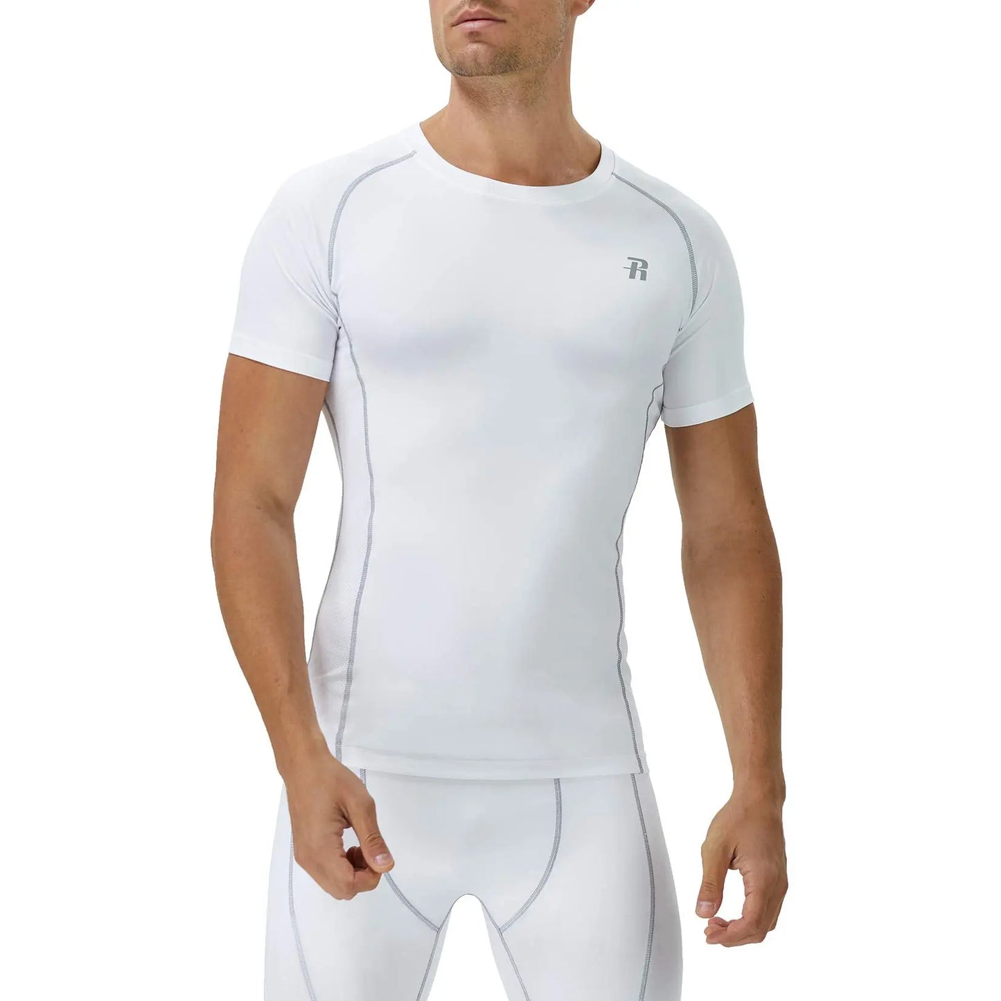 Runhit Men's Shirts Compression Shirts for Men Short Sleeve Workout Shirts Fishing Athletic Running White T Shirts Undershirts