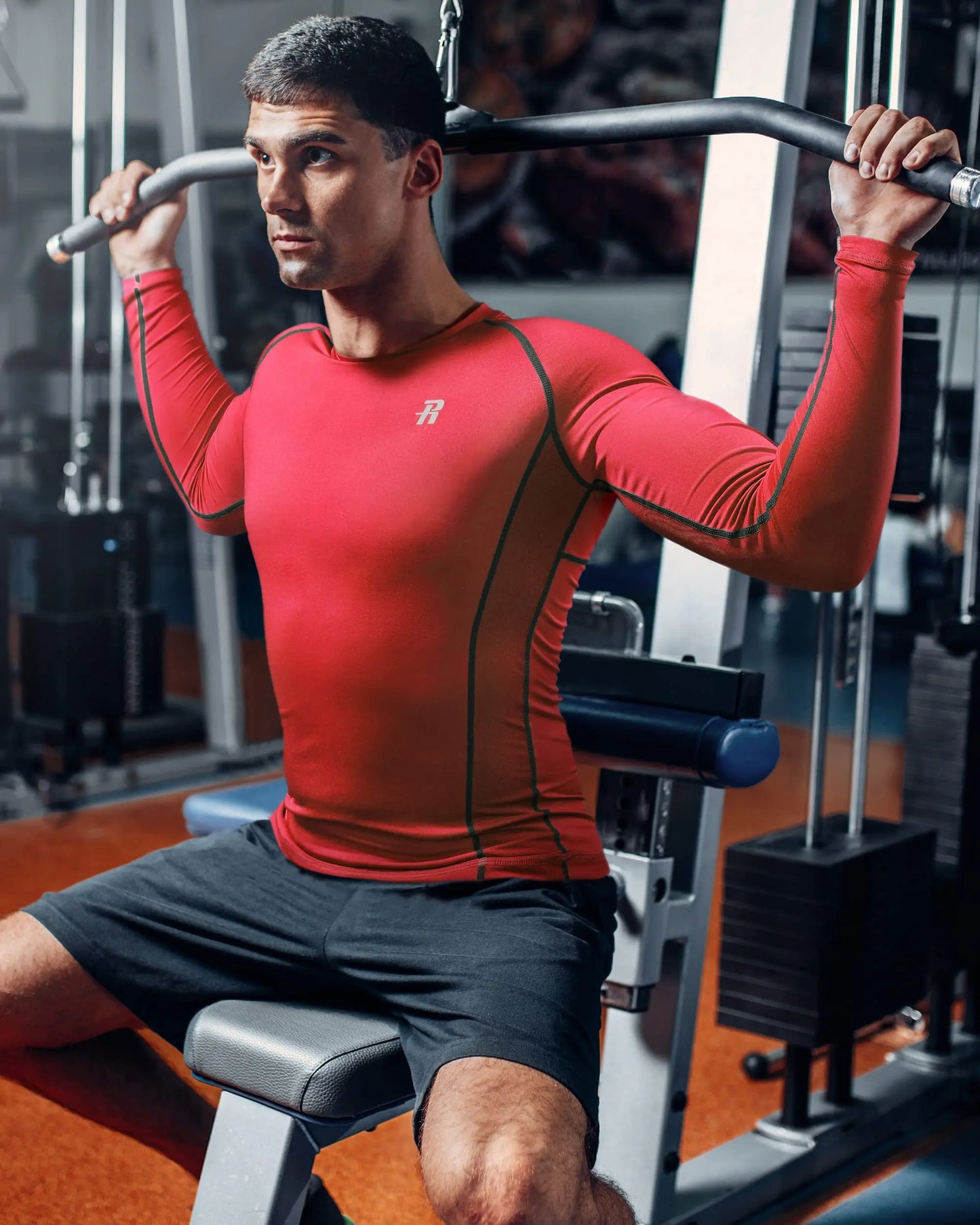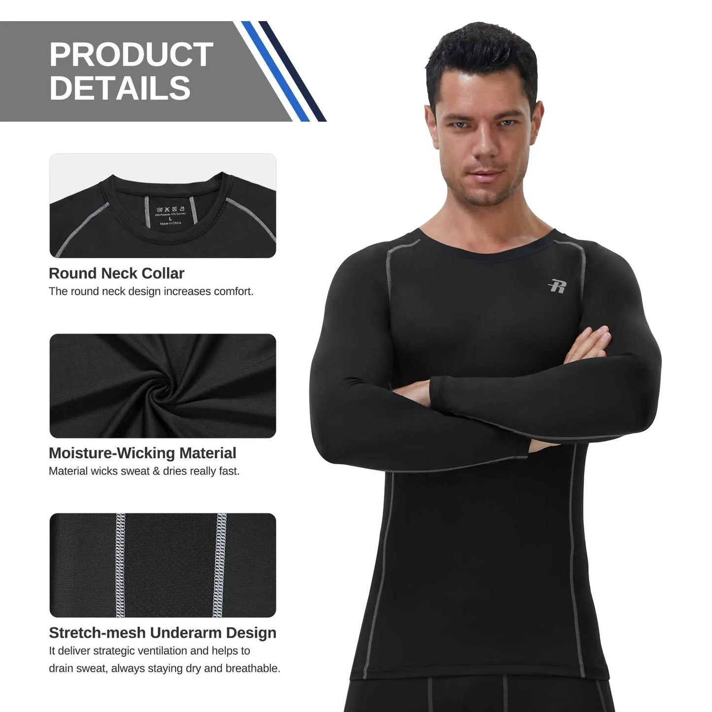Compression shirts for men with elastic along the waist and chest, which's elastic is firm and snap back easily, while still feeling comfortable.Our Long sleeve compression shirts for men provides support for the muscle,Increasing blood flow and better bone alignment.
