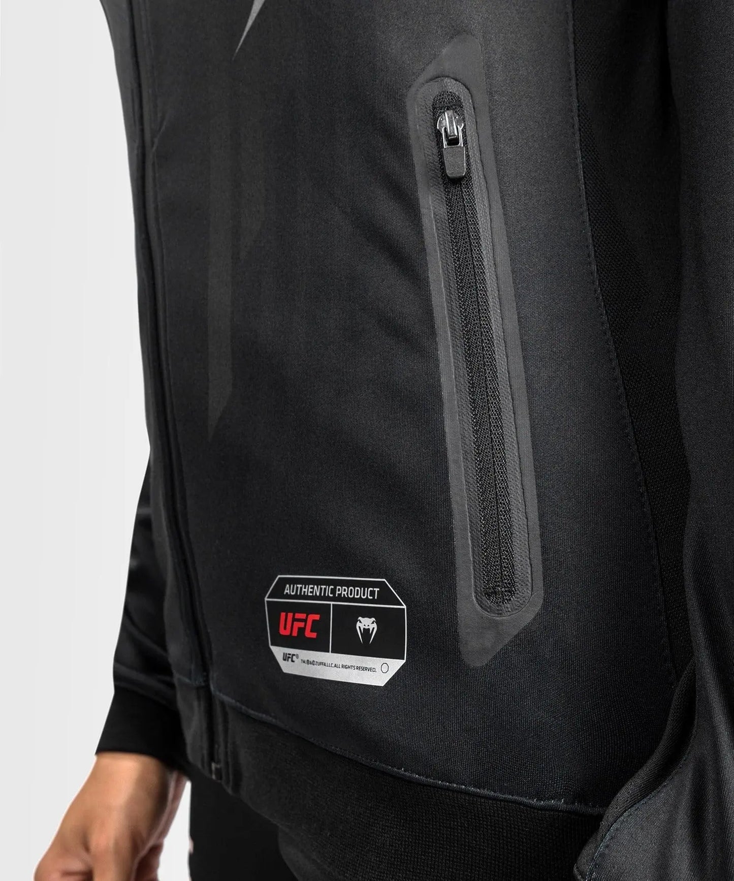 Show your fighter’s mindset to the world wearing the UFC Authentic Fight Night 2.0 long sleeve zipped jacket. This jacket is worn by the greatest UFC fighters during their pre-fight warm-up as well as their entrance to the Octagon to control their body warmth. The UFC Fight Night 2.0 jacket is perfect for sports and compliments your everyday wardrobe. A combination of technology, this jacket has been designed to provide optimal comfort to fighters throughout their preparation during the fight night. It will keep you warm before and after your training but also in everyday life. The black color of the fight night collection has been worn by some of the greatest fighters for their walkout like Robert Whittaker, Derick Lewis and Mackenzie Dern Stylist's Tip: Stay comfortable and combine the authentic fight night 2.0 jacket with a blue jean or a fitted black jogger