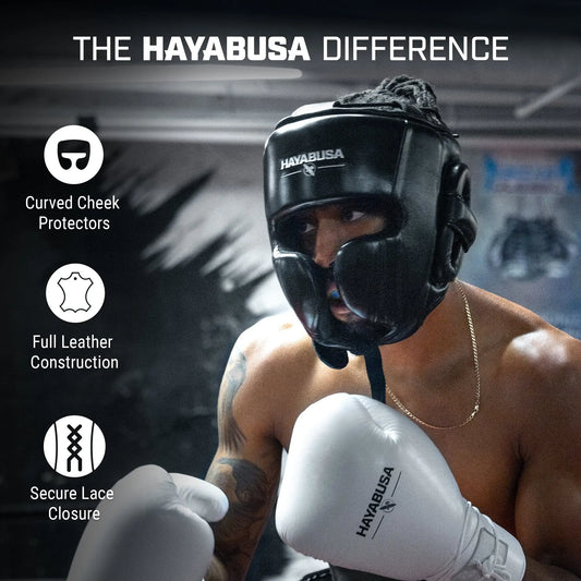 Hayabusa Pro Traditional Leather Boxing Headgear Adjustable - Black