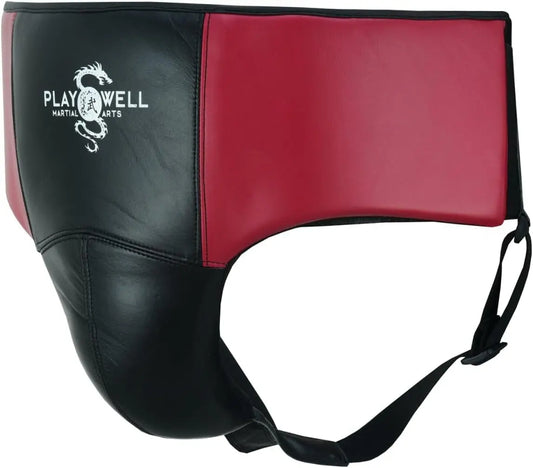 Pro Boxing Boxers Leather No Foul Groin Guard Protection - Black/Maroon