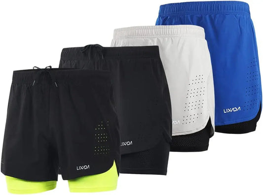 Men'S 2-In-1 Running Shorts Quick Drying Breathable Active Training Exercise Jogging Cycling Shorts with Longer Liner