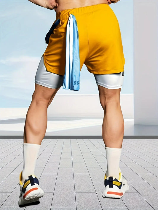 Mens Flexible 2-in-1 Shorts - Superb Stretch & Breathable Two-Layer Style - Adjustable Drawstring for Yoga, Running, Workout, and Summer Outdoor Adventures