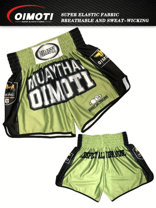 OIMOTI Mens Combat Muay Thai Fight Shorts - Stylish Alphabet Design for Intense Training and Competitions - High-Quality Boxing and Kickboxing Gear