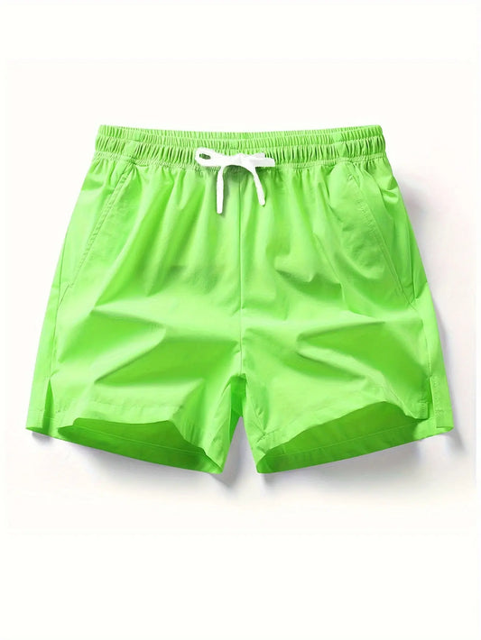 Summer Essential Mens Solid Shorts - Elastic Waist, Drawstring, Multiple Pockets, Breathable, Quick-Drying, Comfortable, Casual Wear for Outdoor Activities, Travel, and Daily Use