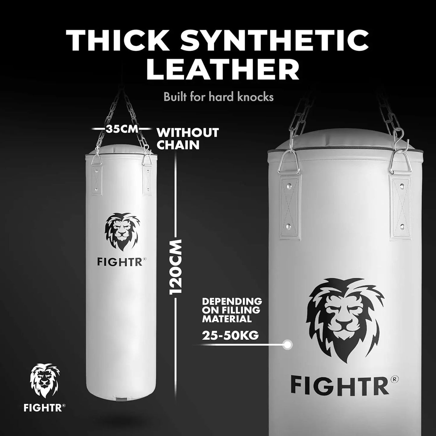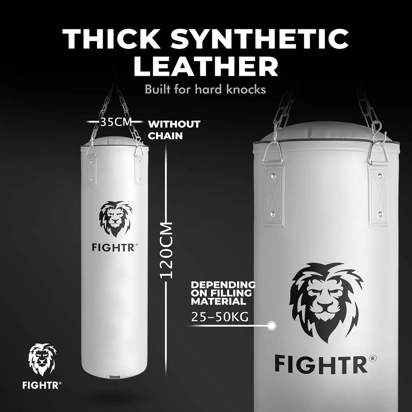 FIGHTR Filled / Empty Punch Bag - Extremely Sturdy & Durable | 4 Point Steel Chain Punch Bag Set for Boxing, Kickboxing, MMA, Muay Thai and Other Combat Sports