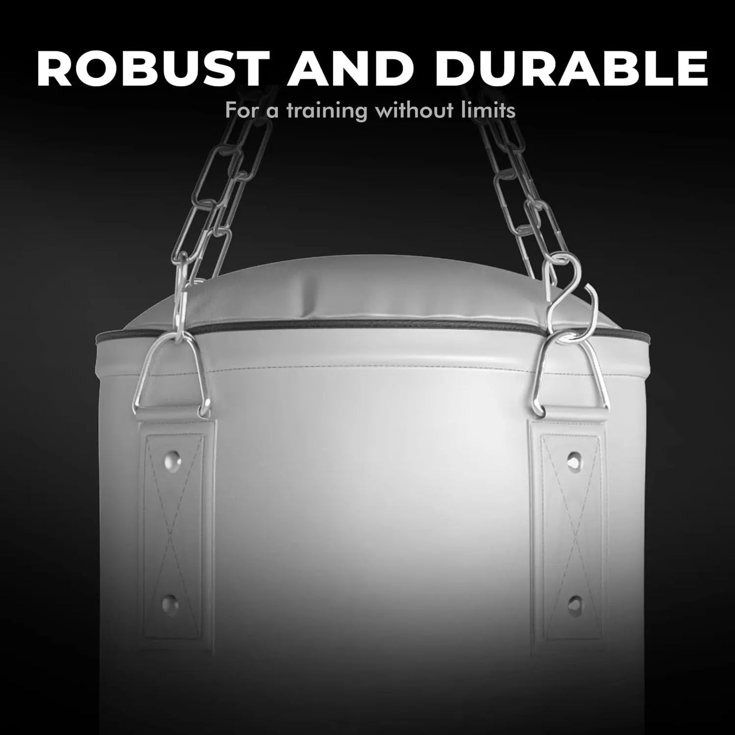 - 【MAXIMUM STABILITY】the 4-point steel chain with 360 degree swivel ensures the best stability during sandbag training. On the bottom there is an extra hook for attaching to a weight to fix the punch bag from fluctuations.