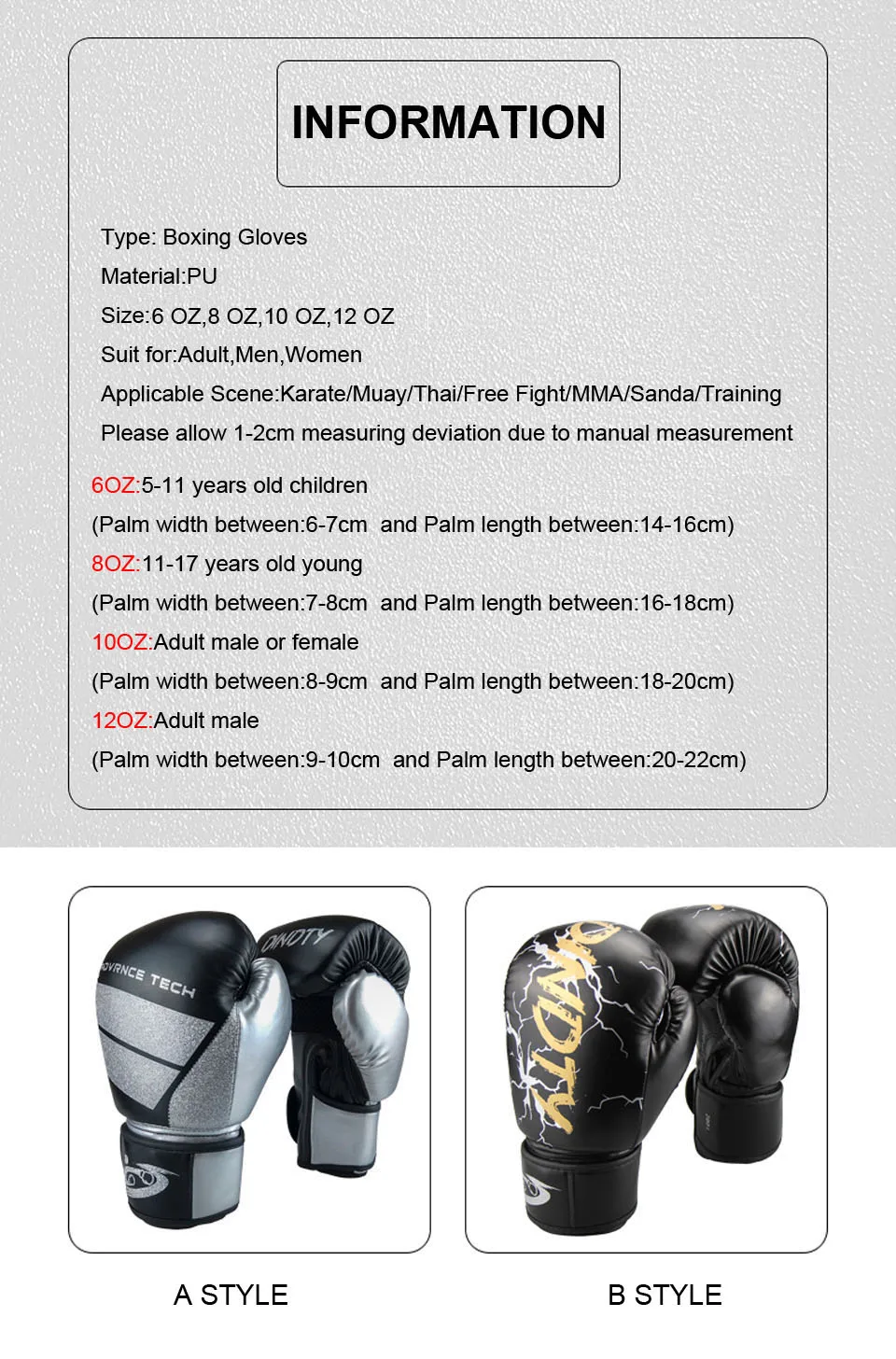 PU Leather Boxing Gloves for Men, Women & Kids – Training & Fight Gloves (6, 8, 10, 12oz)