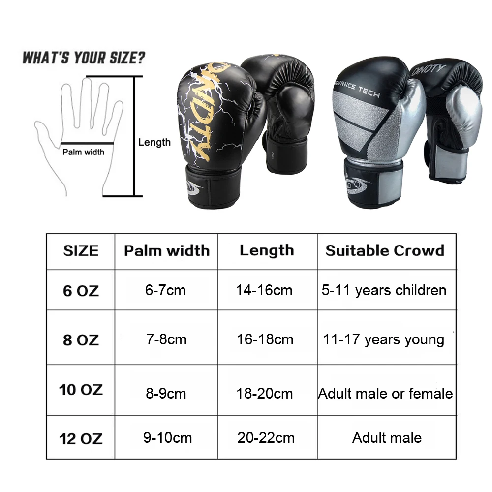 - 10oz: Adults (Men & Women) – Palm width 8-9cm, Palm length 18-20cm