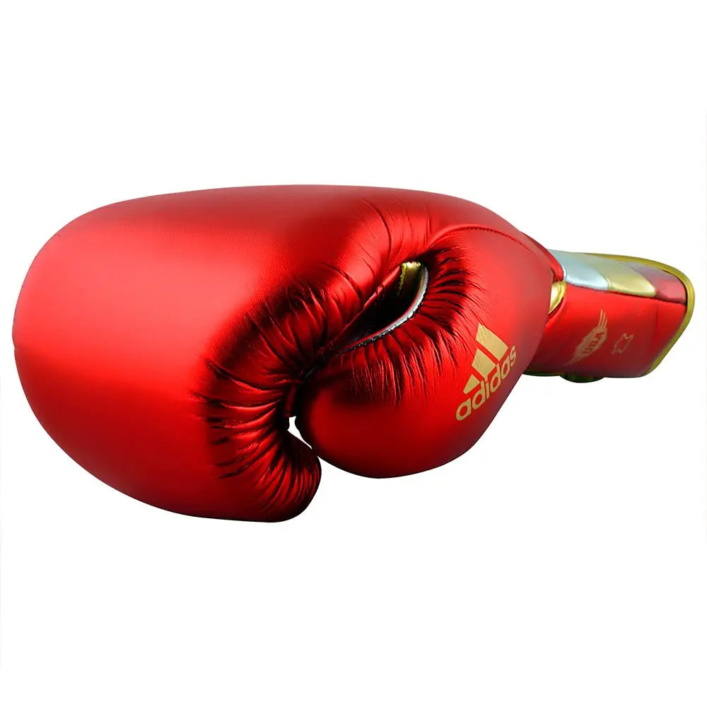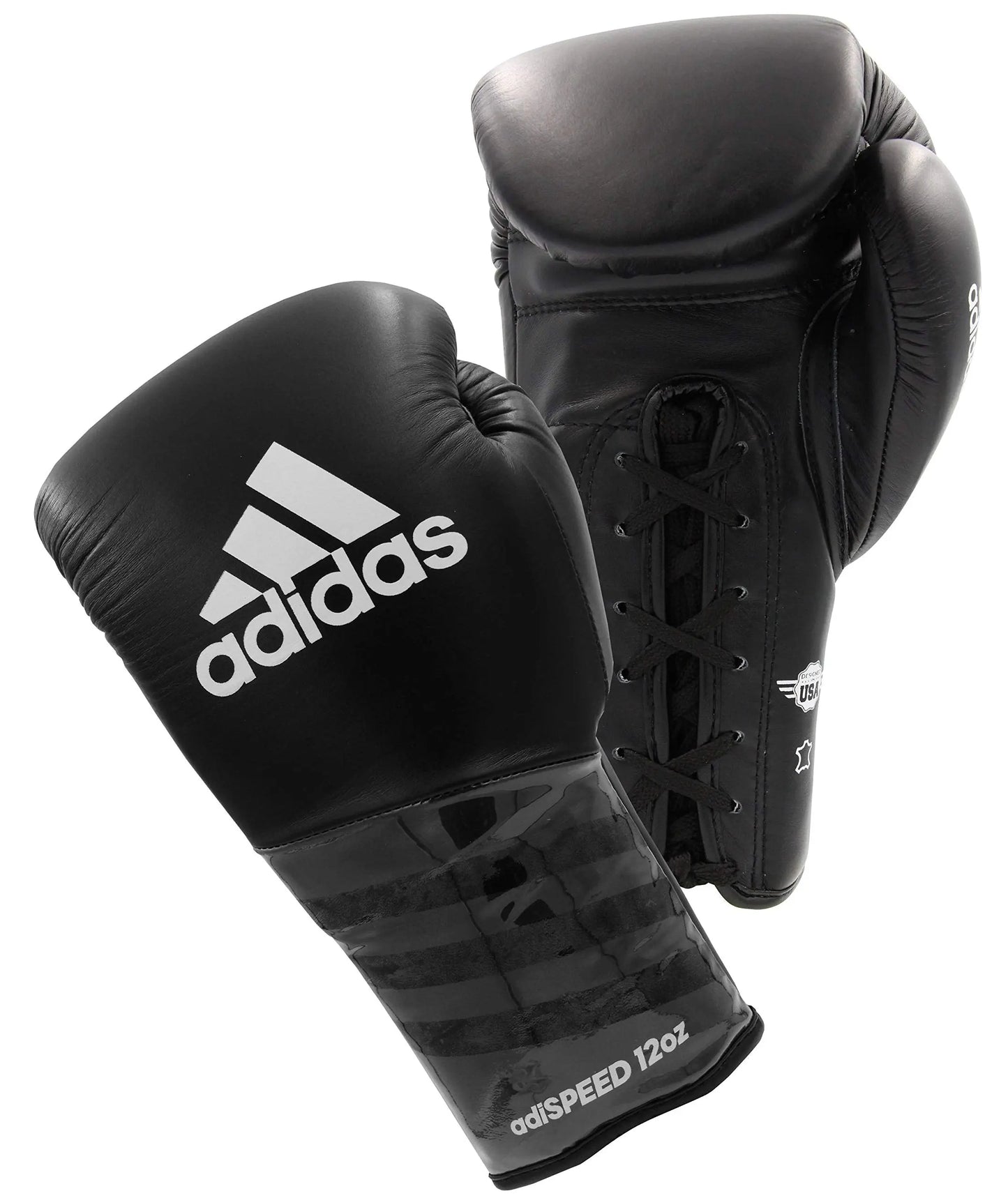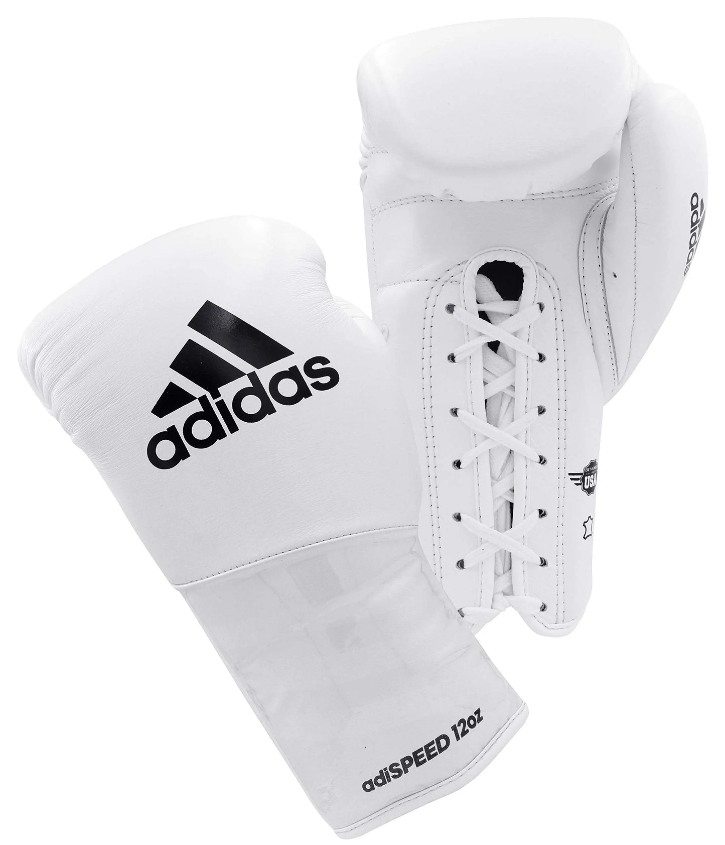 adidas Adi-Speed 500 Pro Sparring gloves, are top of the line training gloves designed for Professional Boxers. Designed in the USA, these Pro ‘Speed’ gloves have been conceived in order to let the pro boxers achieve their best level of performance. These gloves use innovative Cloud MVE foam that is extremely protective and has exceptional ability to absorb heavy punches. The glove padding is hand molded and extreme care is taken to ensure the glove will form a perfect wrist to both protect the hand and deliver full power. The shape of this glove ensures comfortable fit the very first time you use it. No need to break in the gloves, they are extremely soft and conform to your hand the first time you wear them. They use traditional lace closure. These gloves have been tested at training in tough conditions with maximum power and intensity and approved by top pro boxers from the USA and worldwide. Like with all boxing gloves, we suggest using a knuckle sleeve, quick hand wrap or a regular hand wraps to protect skin on your knuckles.