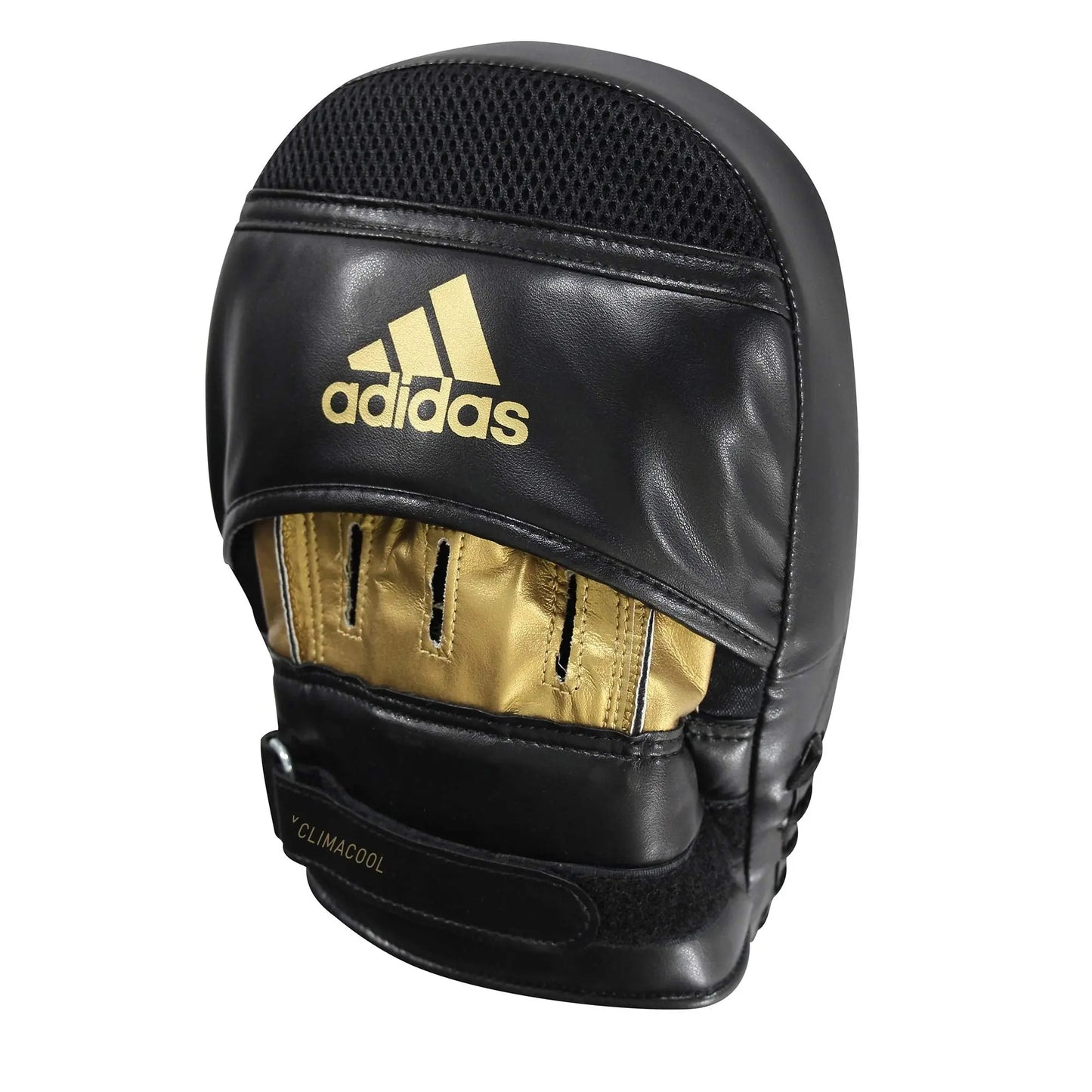Intensify your workout with the Focus 10 Adult Boxing Mitts from adidas. High-performance PU, EVA and polymax foam deliver superior hand protection and absorb impact on jabs and punches. The padded palm ergonomic grip allows a firmer hand on the mitts, with a Velcro strap for greater wrist support in sparring sessions. - AeroPunch technology - PU3G: flexible, durable fabric - Hand wedge - Velcro Strap - Length: 25cm