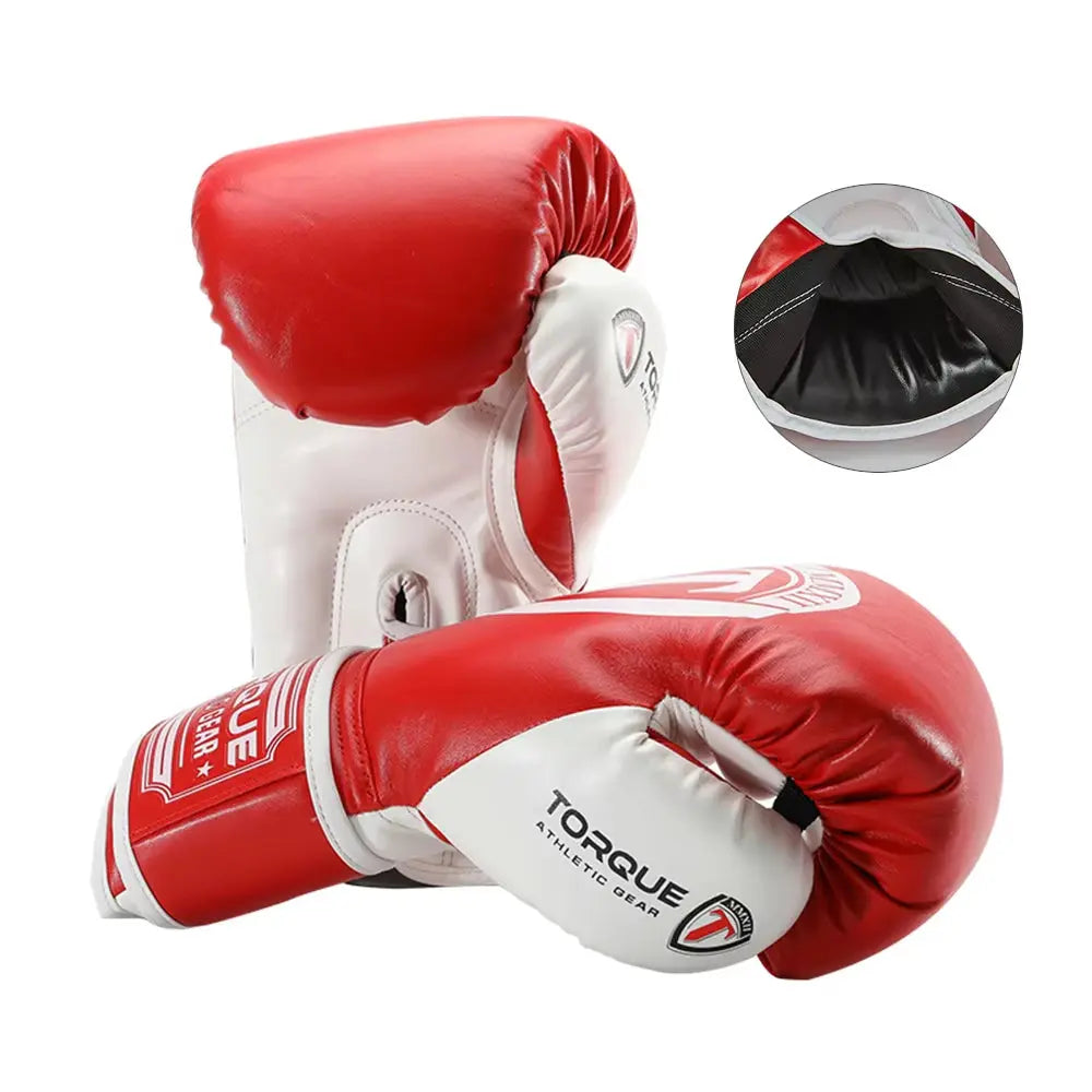 This product, TORQUE's Adult Boxing Gloves, features a wide velcro closure and breathable hole design for added comfort and safety during boxing training. The gloves are made of PU leather with an inner core of EVA multiple foam, ideal for beginner to intermediate fighters. With a thick first peak and accurate thickness to reduce impact, your hands will be protected from severe blows, while the palm vent design effectively dissipates sweat and improves overall comfort. TORQUE's high-quality equipment and clothing are designed and researched specifically for fighting sports, with a focus on function and longevity. To keep your gloves in top condition, follow our simple cleaning and maintenance guidelines, ensuring a great experience for athletes and enthusiasts alike.