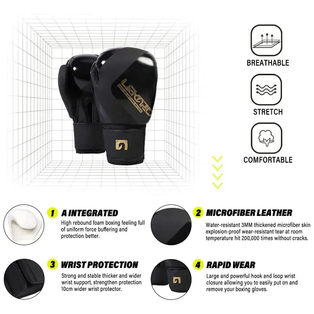 1. High durability: Lekaro boxing gloves are made of high-quality PU material, which can withstand frequent impact and friction, ensuring a long service life.