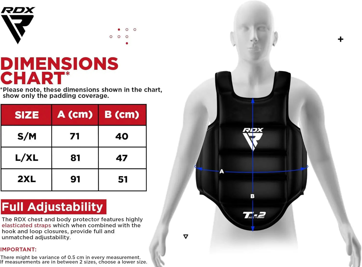 - EFFICIENT ADJUSTABLE STRAPS – Comfort is not just about the feel, it's about the fit. And with the elasticated shoulder straps, this kickboxing body protector adapts to you. These straps ensure that the boxing chest pad adjusts to your body contours, optimizing the diffusion of impacts. The contour fit adjusts mid-training and moves flexibly with your body. Embrace the training with the confidence that your guard is there with you, every step of the way.
