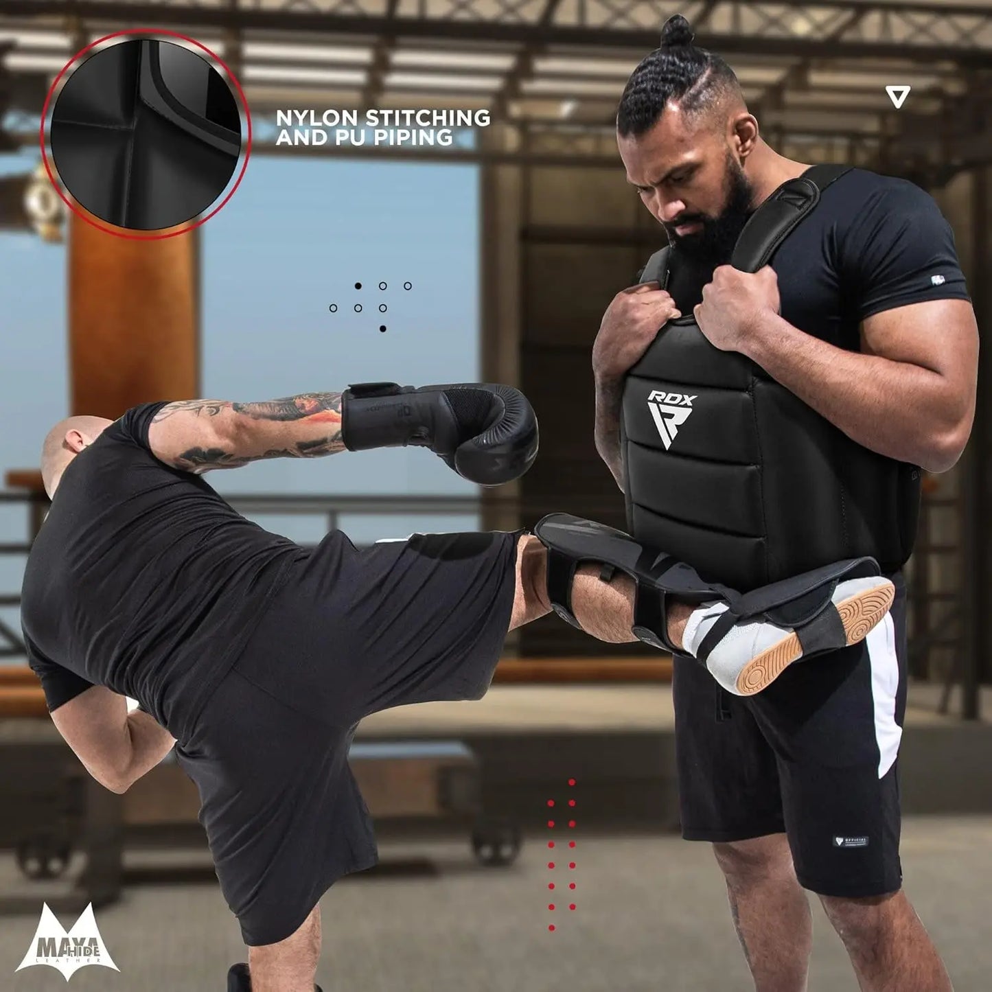 Gear up with the RDX Reversible Body Protector– Durable Maya Hide Leather, thick multi-layer padding for protection, reversible design for versatility, and Quick-EZ Closure for easy wear. Train hard and stay protected in style.