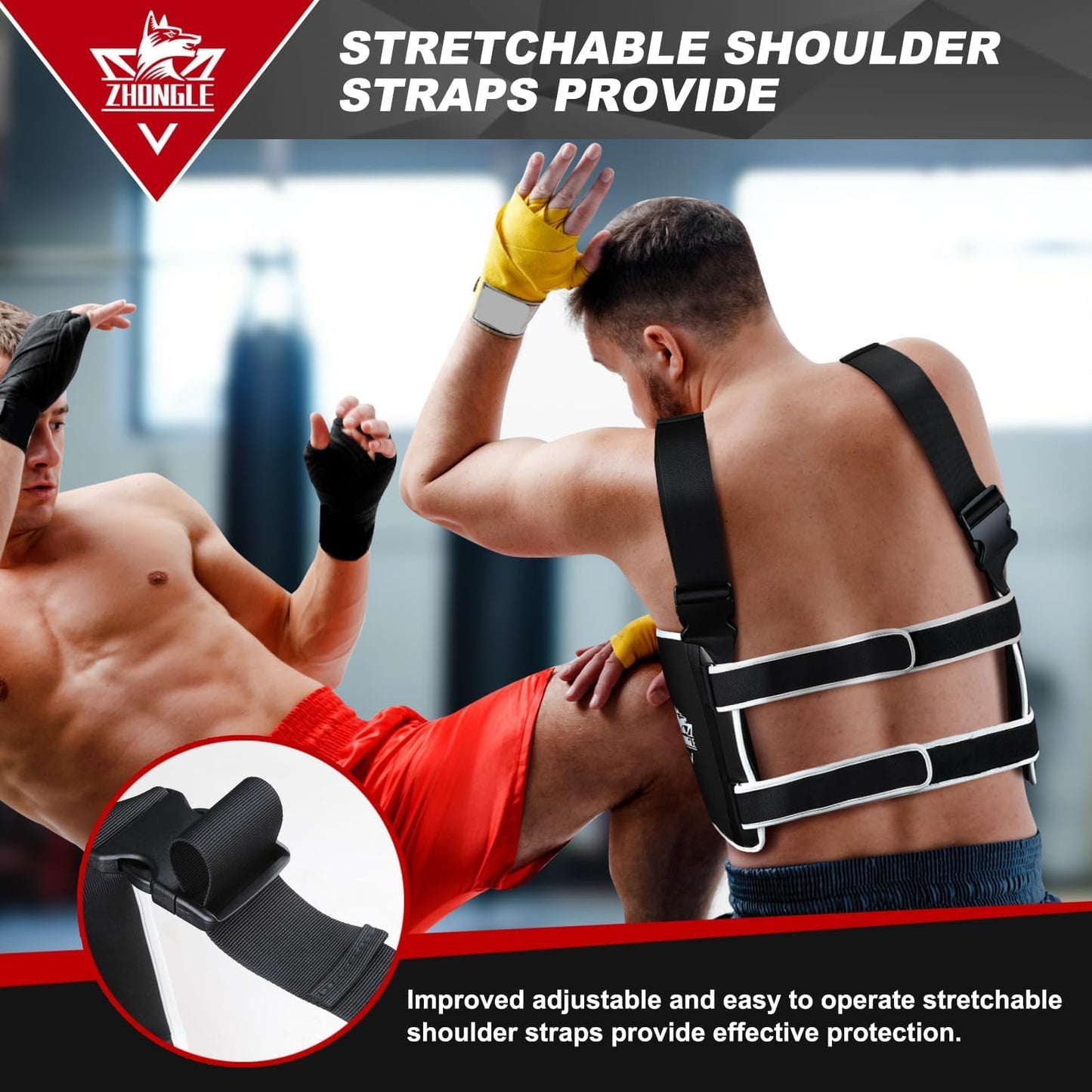Strike Shield Suitable for Martial Arts, Boxing, MMA, Muay Thai, Sanda and all sports need chest protection.Adjustable Buckle Closure Helps In Attaining A Convenient Fit—— Comfort is not just about the feel, it's about the fit。Pu Leatherwear Resistant, The Sturdy Exterior Remains Crack Free Even After Repeated Engagements.The multiple layers of padding evenly spread the force from potent strikes