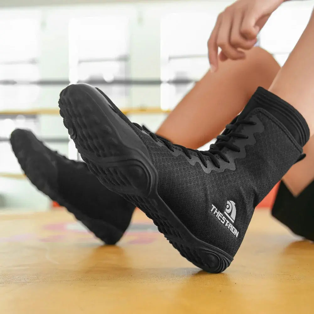 Regarding boxing, having the right footwear is crucial for success. Our high-quality boxing shoes are designed to provide the support, grip, and agility needed to excel in the ring. Whether you're a seasoned pro or just starting, our shoes offer unmatched comfort and performance. With their lightweight construction and superior traction, you can confidently move around the ring without worrying about slipping. Additionally, these durable shoes feature a breathable upper mesh and ankle support to keep your feet cool and prevent injuries. With a variety of styles and colors to choose from, our shoes not only enhance your performance but also make a statement. The adjustable laces and straps ensure a snug fit for secure foot placement and maximum comfort during long training sessions. Investing in quality boxing shoes is essential for improved performance and injury prevention. Please don't wait any longer, check out our top-notch collection today and elevate your boxing game!