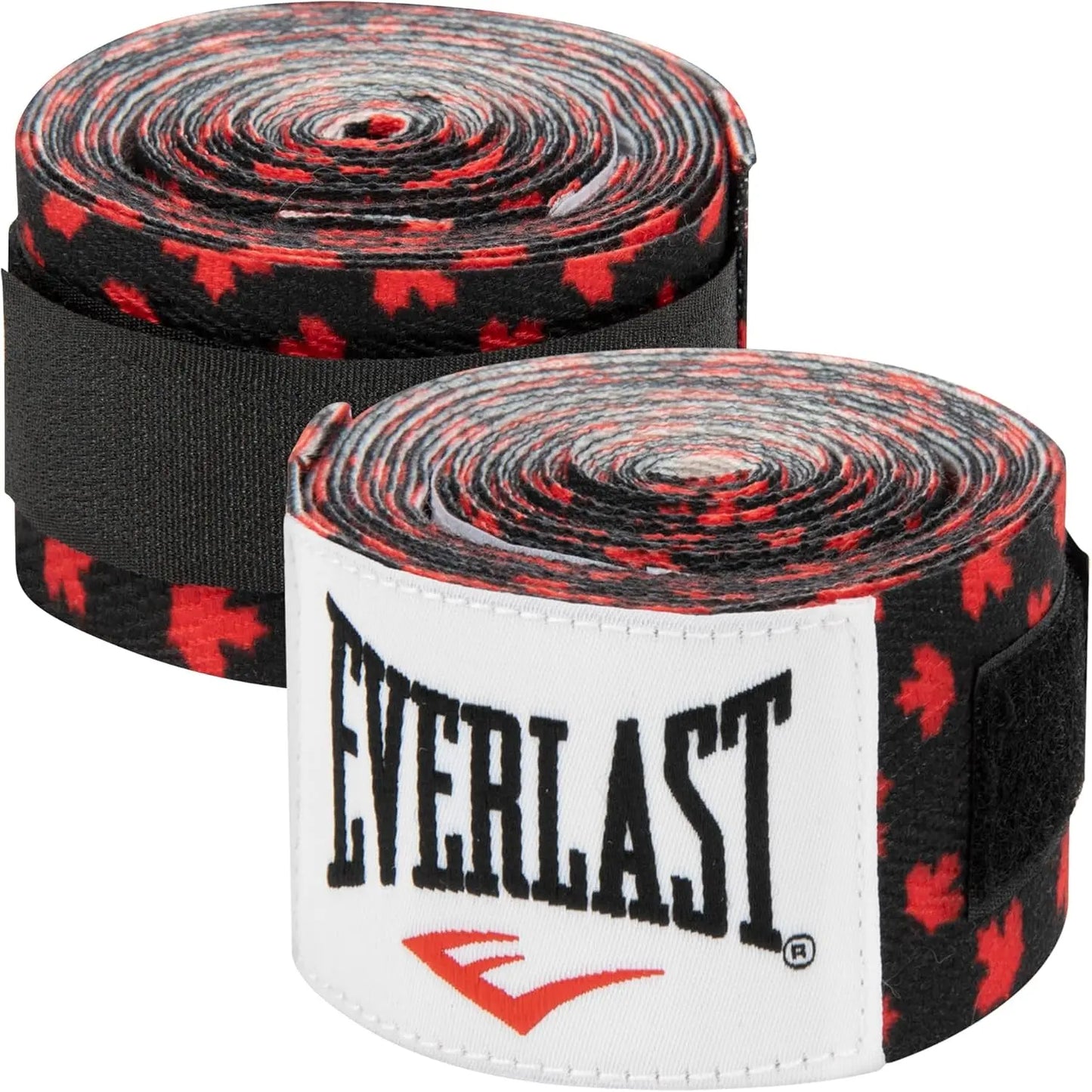 Everlast’s Canadiana Printed Handwraps will protect you in all your combat training sessions. With 120 inches of machine-washable poly-cotton, you can rest assured that these hand wraps will completely cover the wrist, knuckles and fingers. This set of two features an antimicrobial treatment, which fights off offensive odours caused by sweat. Use the thumb loop and hook-and-loop closure for a secure and ideal fit. Make a statement at your gym with the bold maple leaf prints, fusing your Canadian roots with your active spirit.