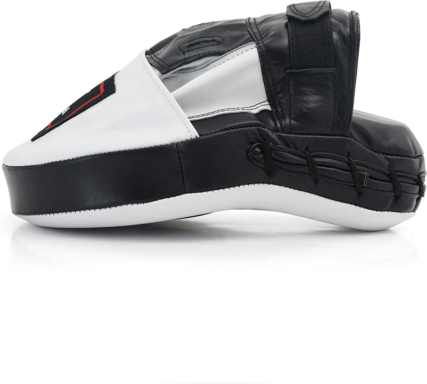 Bullseye Target for Precision Striking.A great cardiovascular workout, focus mitt training teaches rhythm and precision in a natural way. These Pro Impact Curved Focus Mitts are furnished with a bullseye target in the center, providing accuracy guidance for precision striking when the person is training. If you want to improve your, footwork, accuracy or timing, these focus mitts are the way to go. | Sweat-Resistant Lining.These contrast mitts feature an easy-to-use, slip-on design that stays firmly in place during workouts. For increased comfort, the interior of the mitt is furnished with a sweat-resistant lining, keeping the material dry, slip-resistant and odor-free throughout each training session. | Versatile Mitts in Your Choice of Color.Available in black and white as well as black and red color combinations to meet your needs, these mitts can help you quickly develop excellent punching and defensive skills. The versatile mitts are perfect for boxing, kickboxing, martial arts, MMA fitness, and cardio workouts, plus they’re portable, so you can easily take them everywhere you go. |