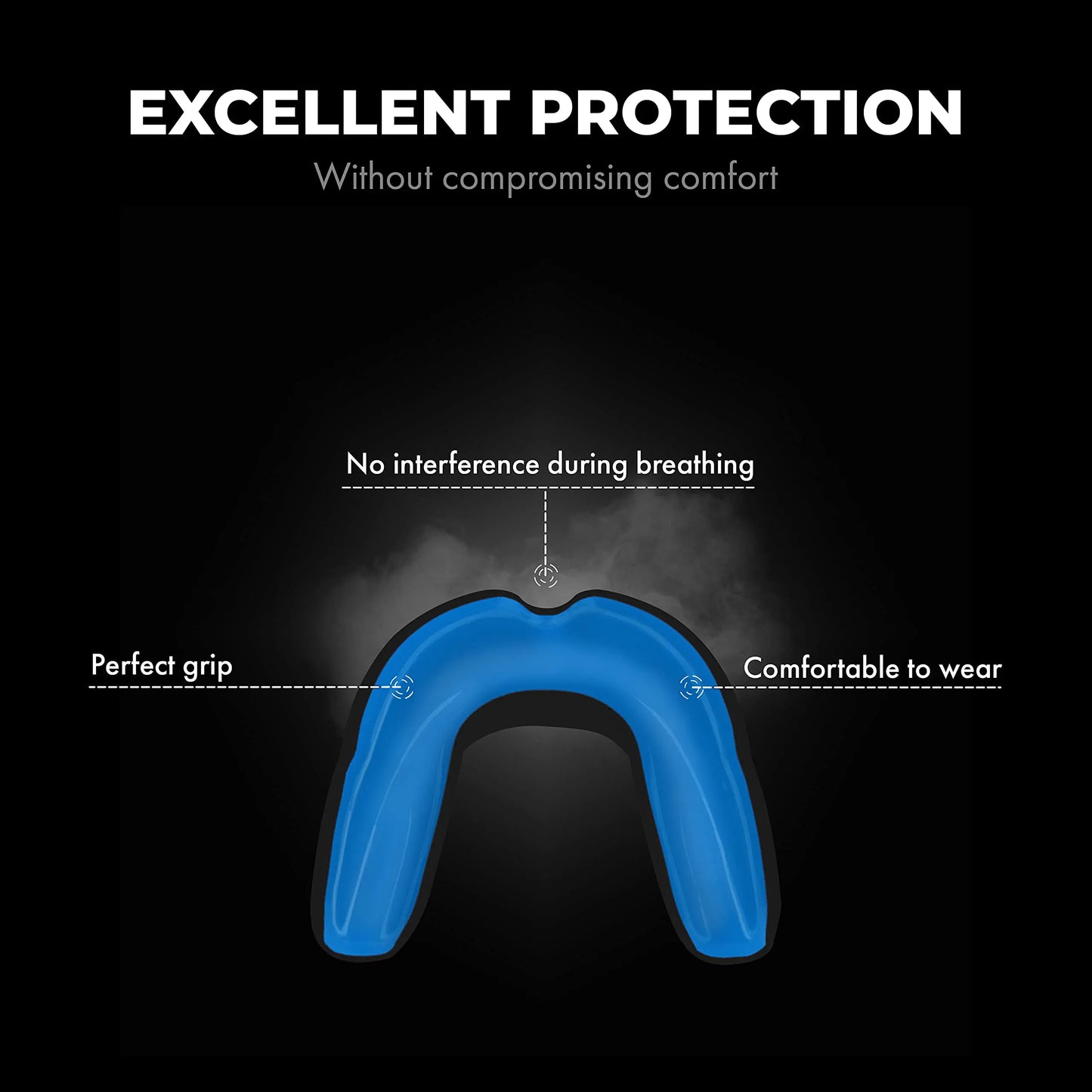 • 【MAX. OXYGEN and highest comfort】Deep breathing, good grip and a comfortable feeling. Through the slim design, you don’t even realize that you wear a mouth guard. More endurance and focus helps you to concentrate completely on the win.