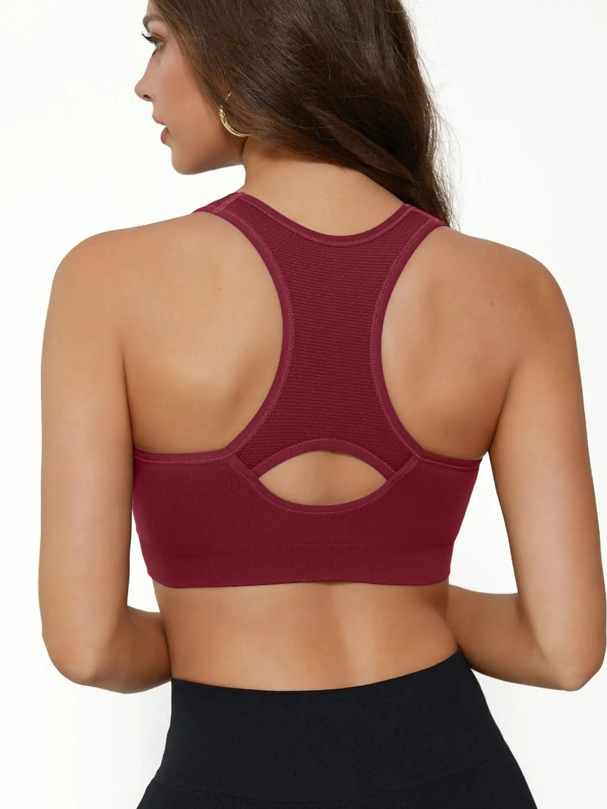 Ultimate Elasticity: Experience the exceptional elasticity and stretch of our plus size sports bras, making them easy to put on and take off without compromising on size.Our sports bras are available in a wide range of sizes, ensuring every woman can find a comfortable and supportive sports bra.Full Coverage Comfort: Specifically crafted for a seamless fit, these racerback sports bras pack offer full coverage with no side seams to minimize friction. The back hollow-out designs enhance breathability, wicking away sweat to keep you dry and comfortable throughout your workout.Versatile Performance: The soft and moisture-wicking fabric of our racerback sports bras makes them suitable for various sports activities, including workout, running, yoga, pilates, cycling, boxing, tennis, dancing, walking, fitness classes, aerobic exercises, or everyday wear.Padded & Supportive Racerback Design:Our sports bra features strategically placed padding to offer enhanced shape and ample support. The 3D wrap-around design ensures maximum comfort and freedom of movement, while the racerback style releases shoulder blades, allowing unrestricted motion.Exceptional Customer Service: With years of expertise in crafting women's activewear, we take pride in the quality of our sports bras. Feel confident in our product, and reach out to us with any inquiries – we aim to respond within 24 hours.Share