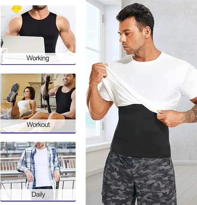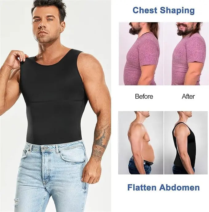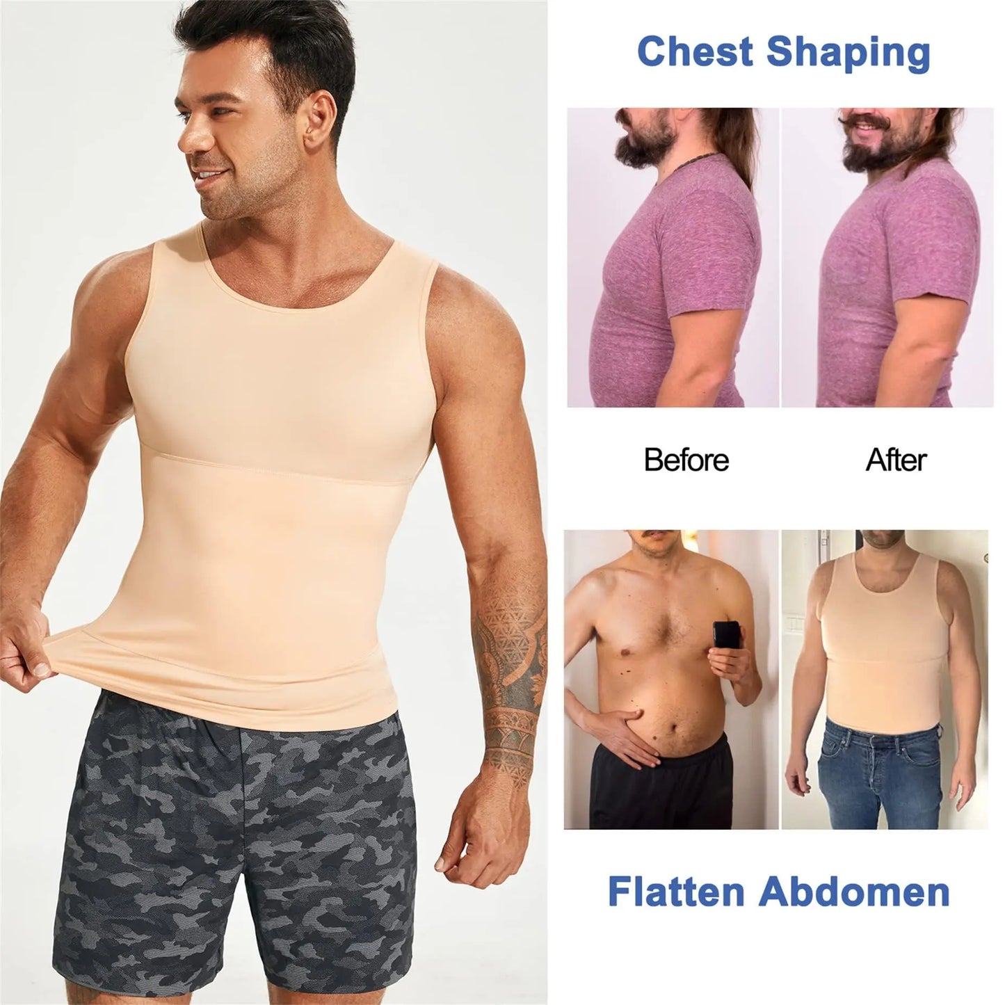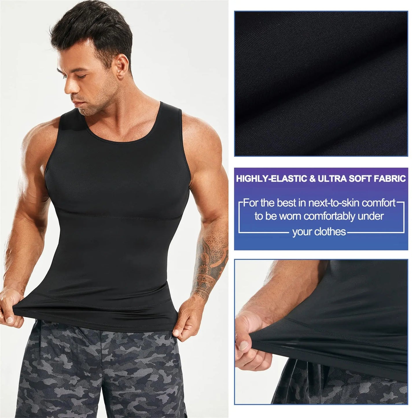 Gotoly Men Compression Shirt Slimming Shapewear Undershirt Body Shaper Vest Abs Workout Hide Chest Tank Top