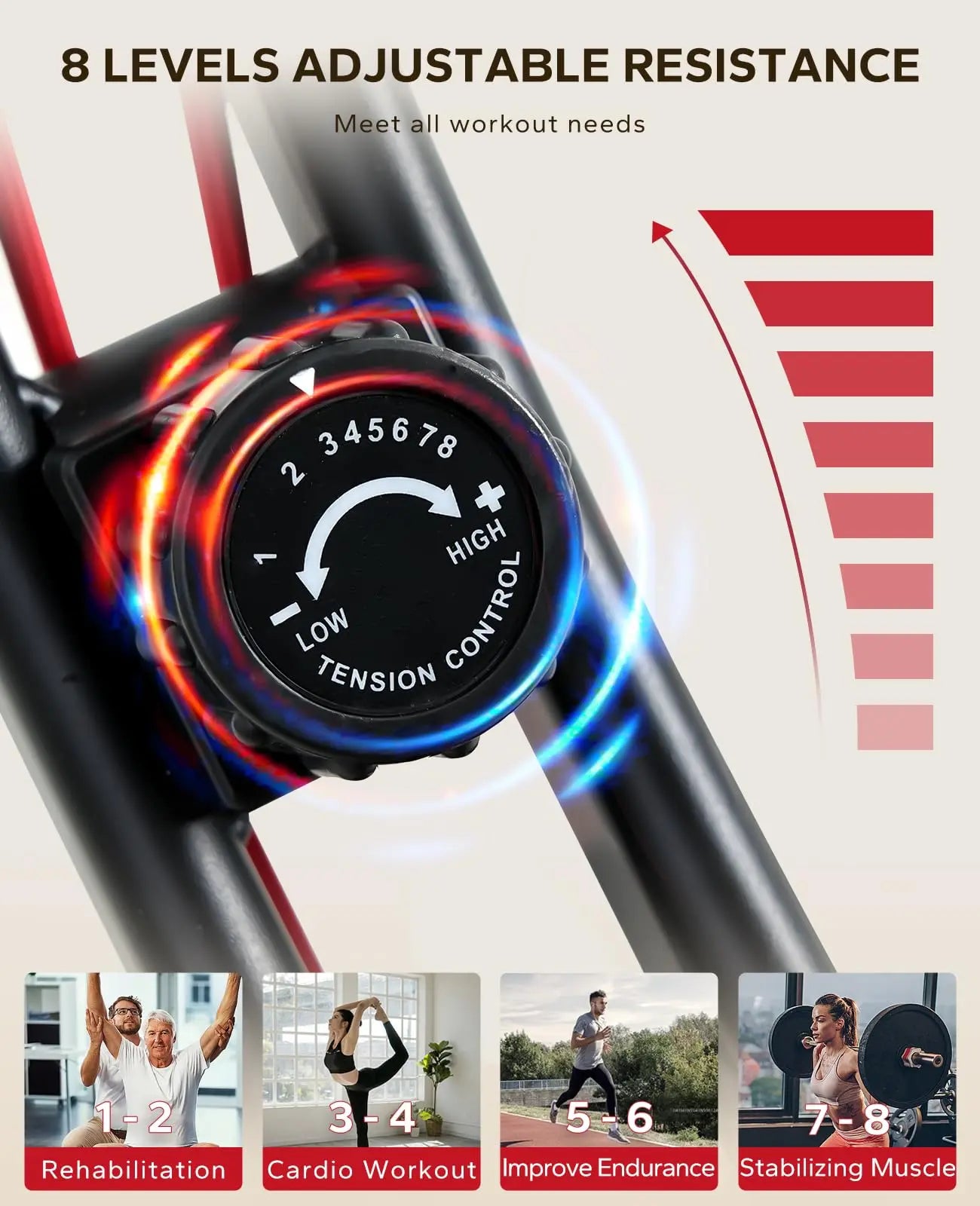 - 【8-Level Adjustable Magnetic Resistance】The Foldable stationary bike provides you with more adjustable weight options, we use silent and smooth magnetic flywheels to make sure no abnormal noise when exercising at home. 8-level resistance adjustment can meet your diverse needs. The Arm Resistance Bands can help you exercise your upper and lower limbs at the same time.