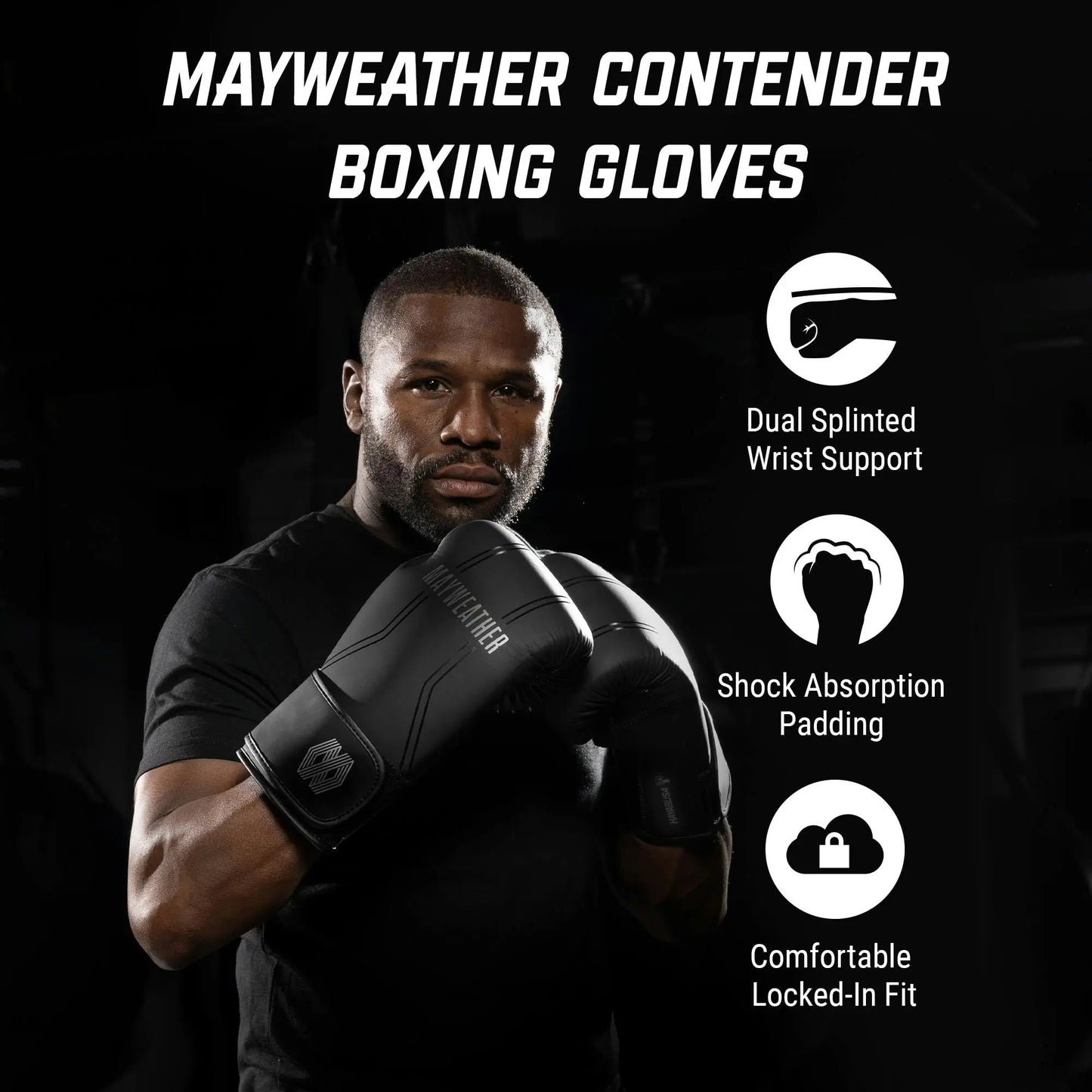 - The Ultimate Training Glove: Elevate your boxing skills with the Mayweather Contender Boxing Gloves—crafted for athletes ready to move beyond beginner gear. Featuring dual wrist splints, multi-layered knuckle padding, and a tailored fit, these gloves provide top-tier protection, support, and comfort to help you train harder and stay at your best.