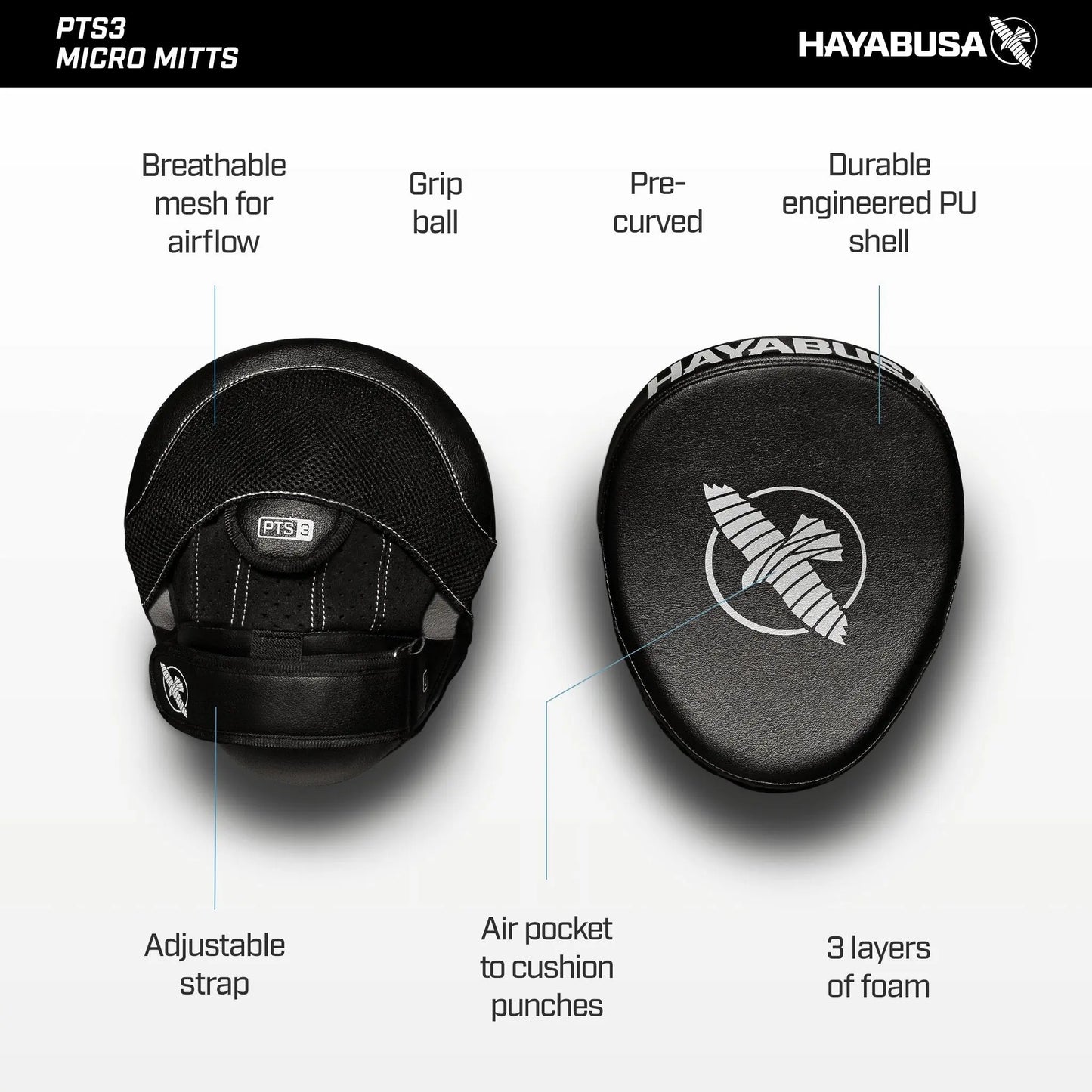- Hayabusa micro focus mitts are compact, light and perfect for high speed training drills and are the ideal martial arts striking pads.