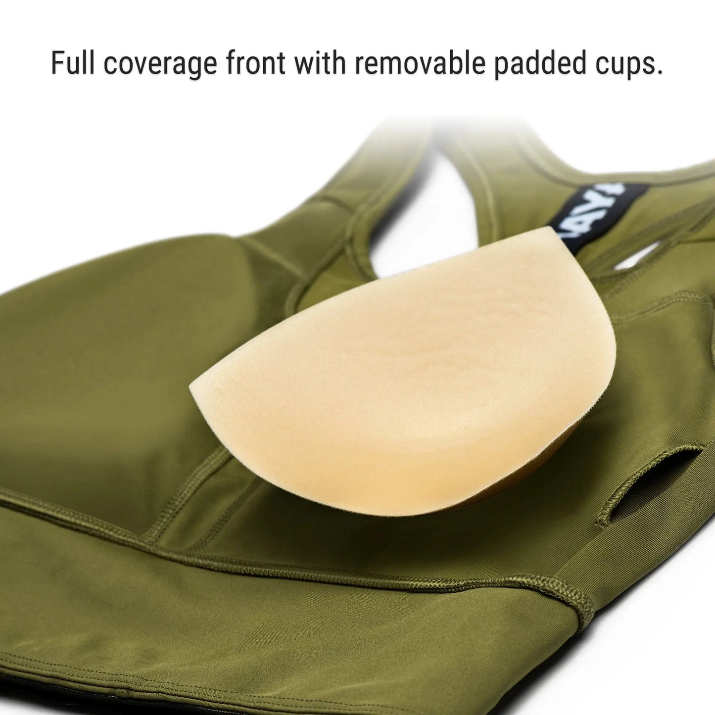 - Full Coverage: Its full coverage design features a scoop neckline with waffle mesh and removable padded cups for added comfort.