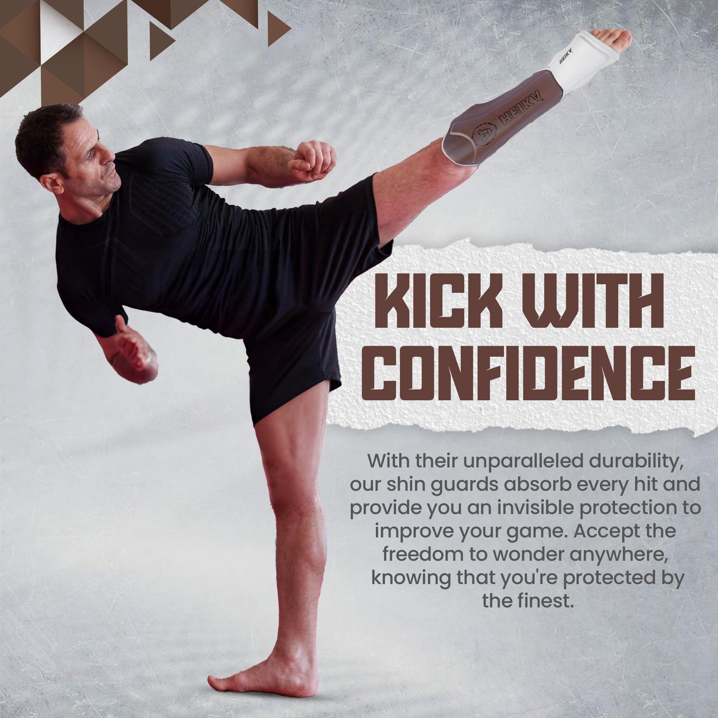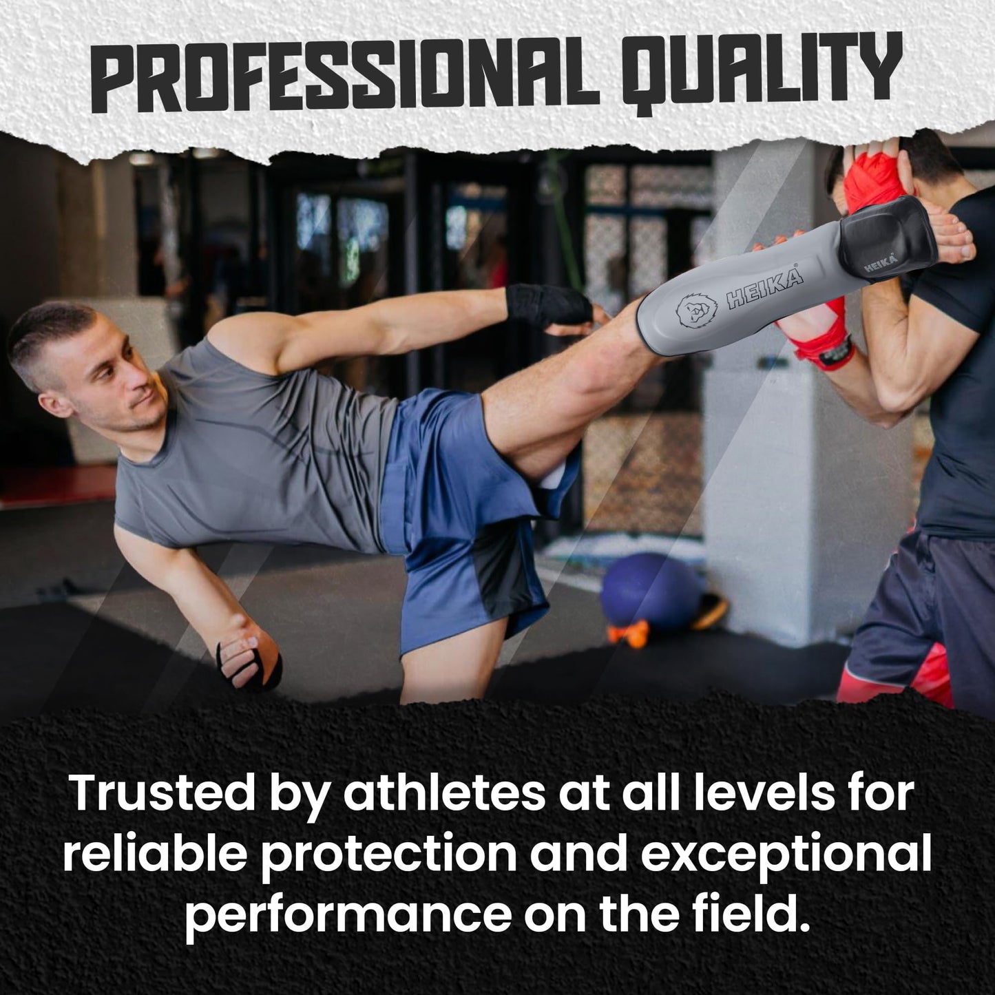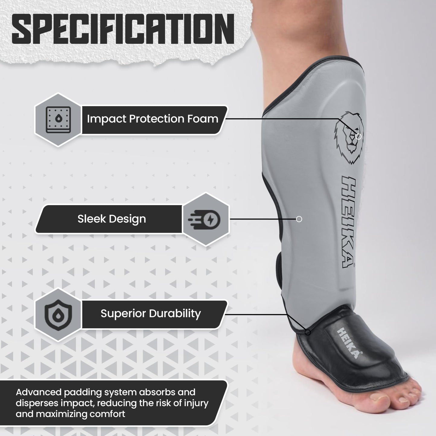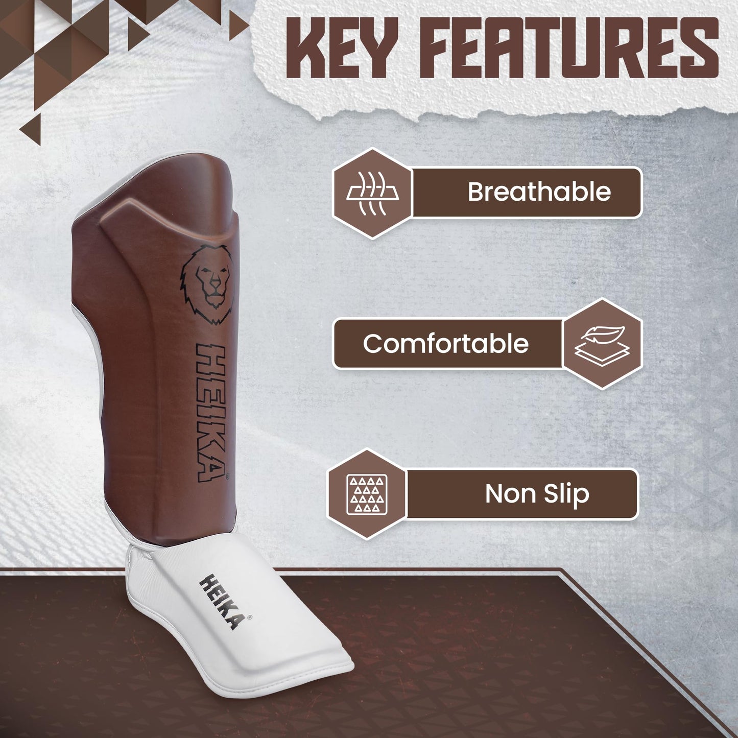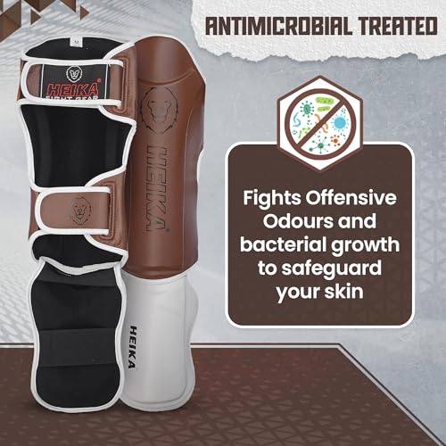 - Introducing Heika’s ultra-light MMA shin guards, crafted from 100% geniune Cowhide leather to enhance your protection while resisting wear and tear. Our shin guards are perfect for athletes in MMA, Kickboxing, BJJ, Muay Thai, Taekwondo, karate, and more, our shin guards are designed for adults. They provide comprehensive protection for the lower leg and ankle against impacts, ensuring maximum comfort with a highly protective material layer. Essential for any sport, our shin guards prioritize your safety in all way. Elevate your performance with the ultimate in protection!