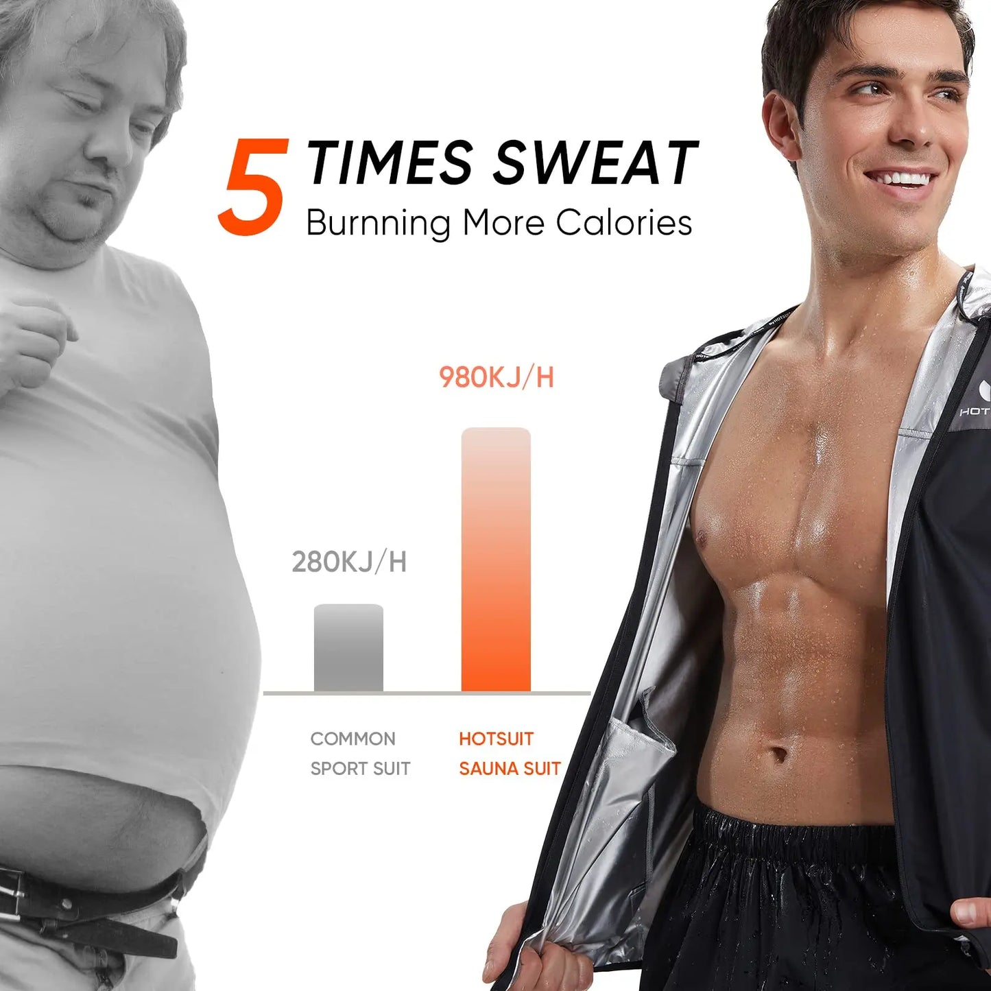 - Enhance your workout effect, make you sweat like a crazy: HOTSUIT New model sauna suits is design to reduce body extra water weight used by boxers or athletes before competition, Exercise with sweat suit, will make you 5 times sweat than before, help you burn more fat and calories, let you enjoy sweat during the sport activities