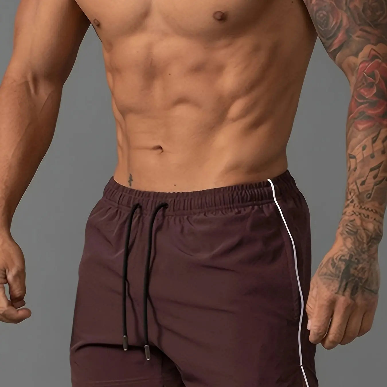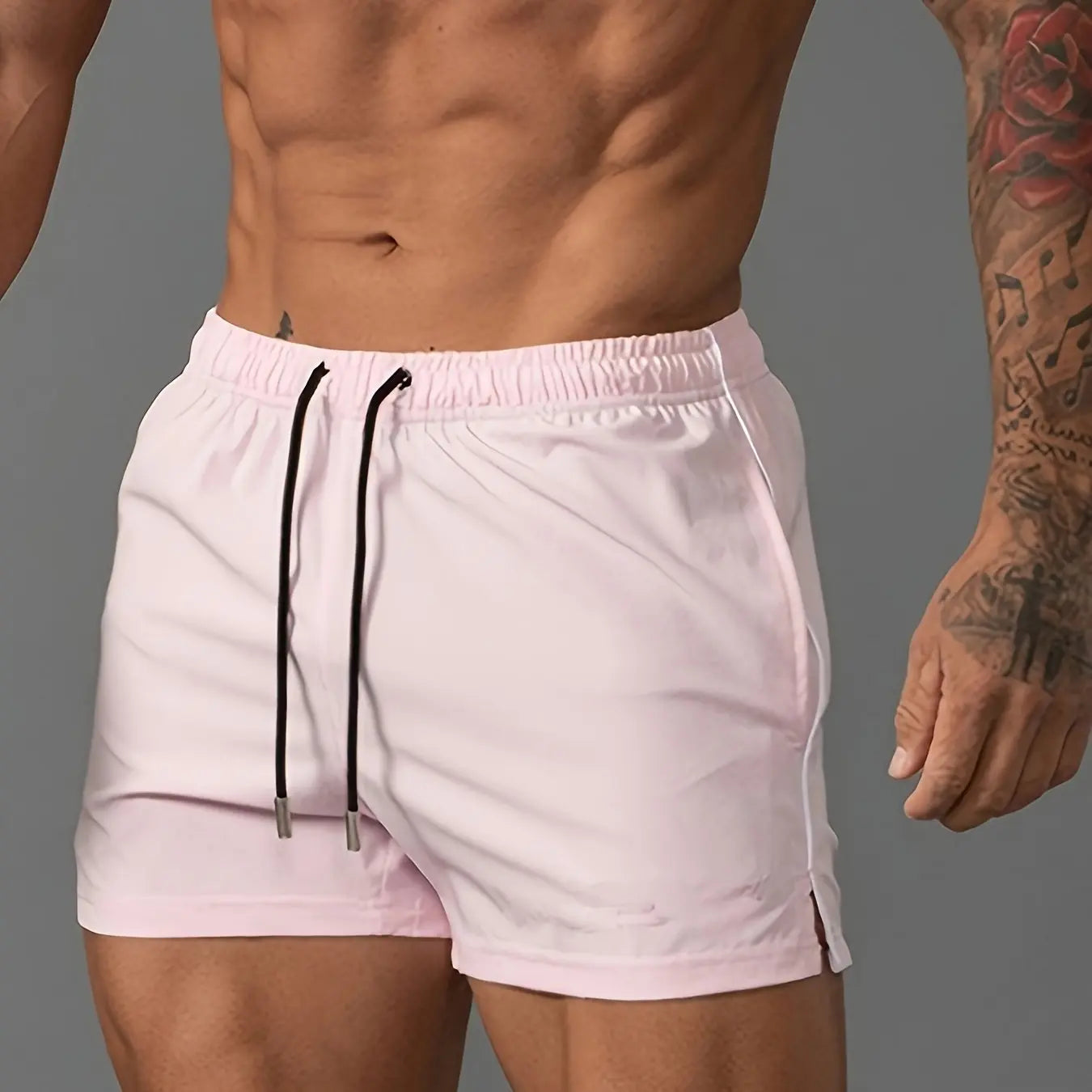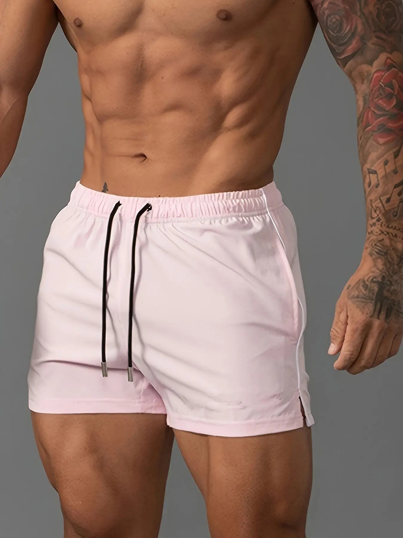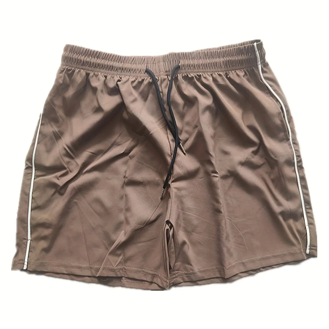 Mens Quick-Dry Solid Shorts with Pockets - Comfortable Drawstring Elastic Waist for Running, Fitness, Training - Stylish Loose Fit
