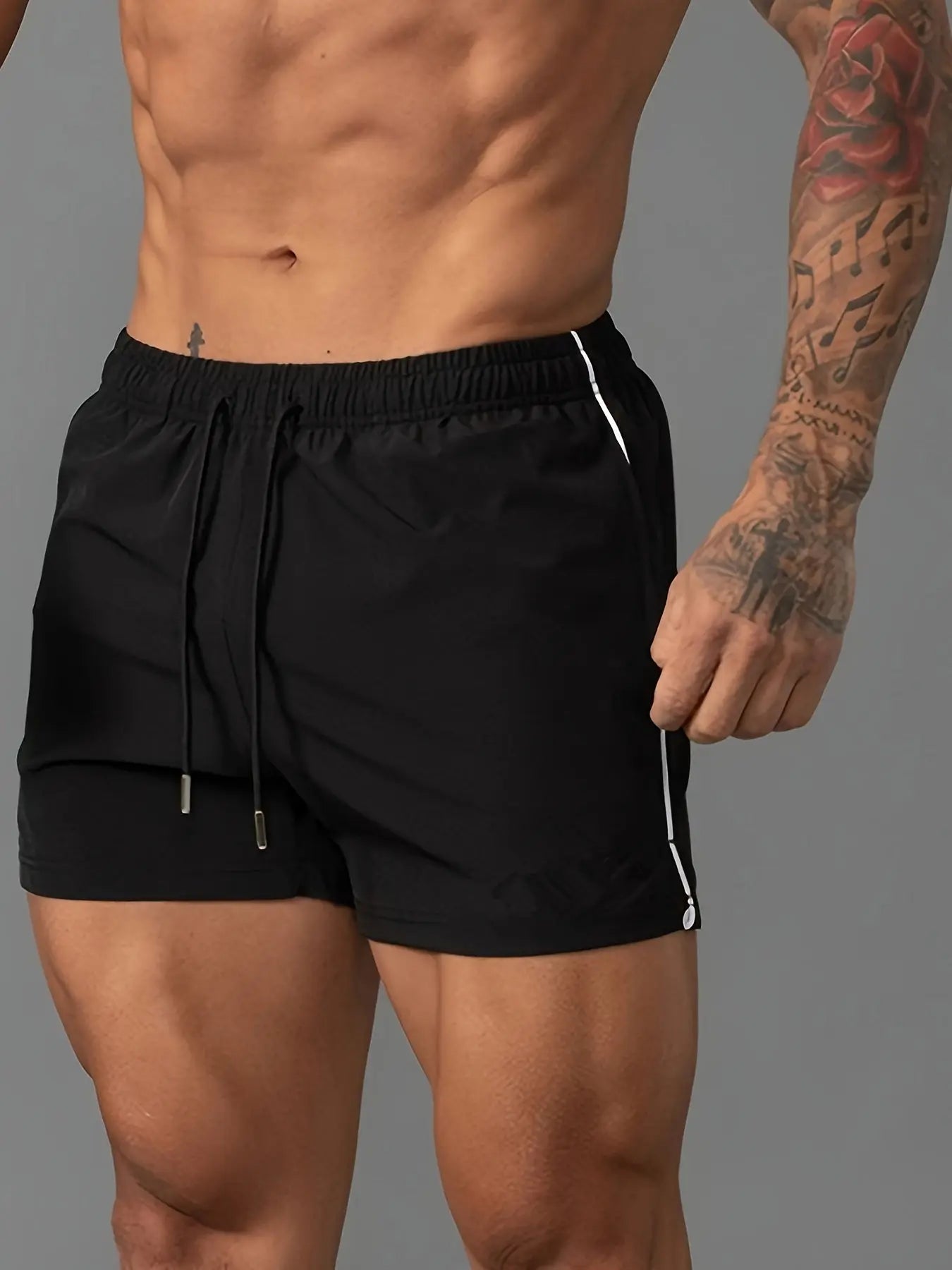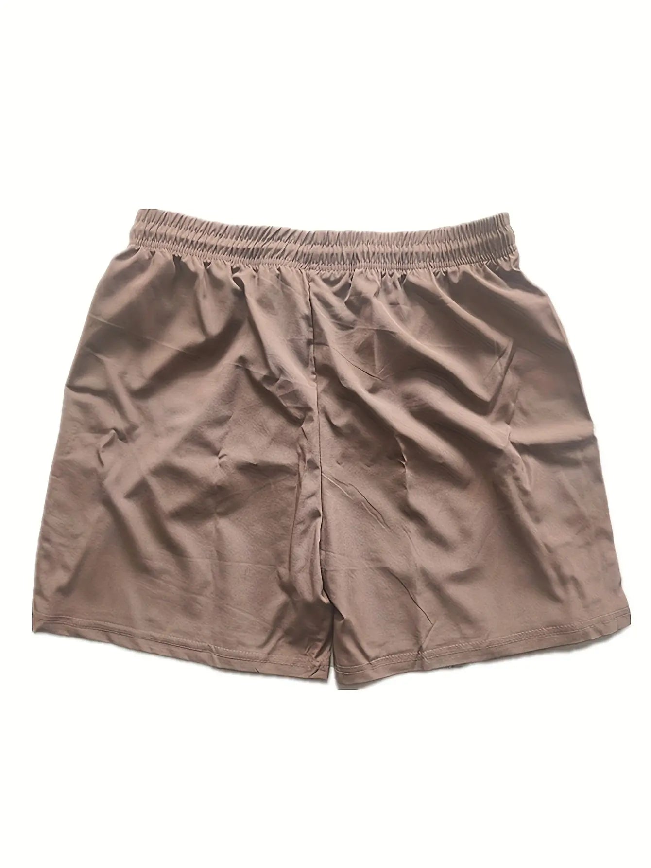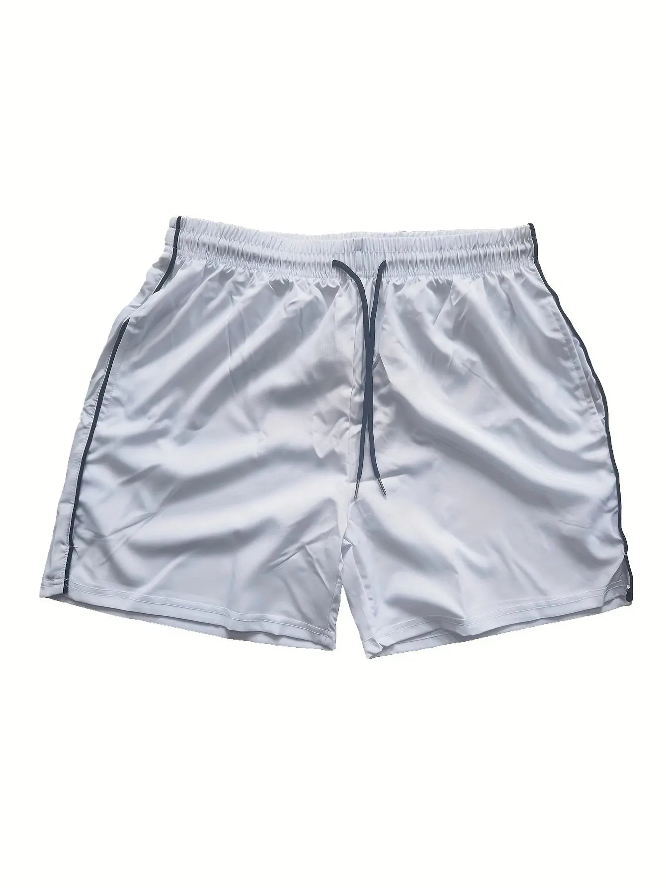 Mens Quick-Dry Solid Shorts with Pockets - Comfortable Drawstring Elastic Waist for Running, Fitness, Training - Stylish Loose Fit