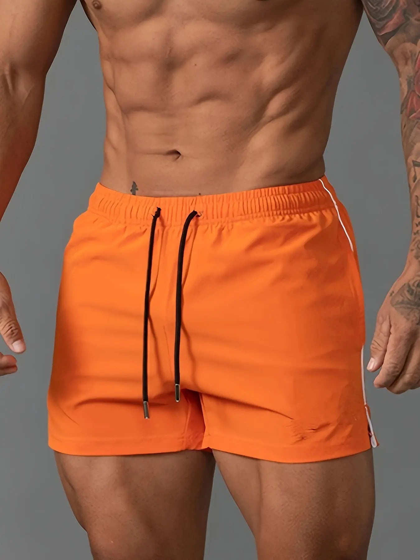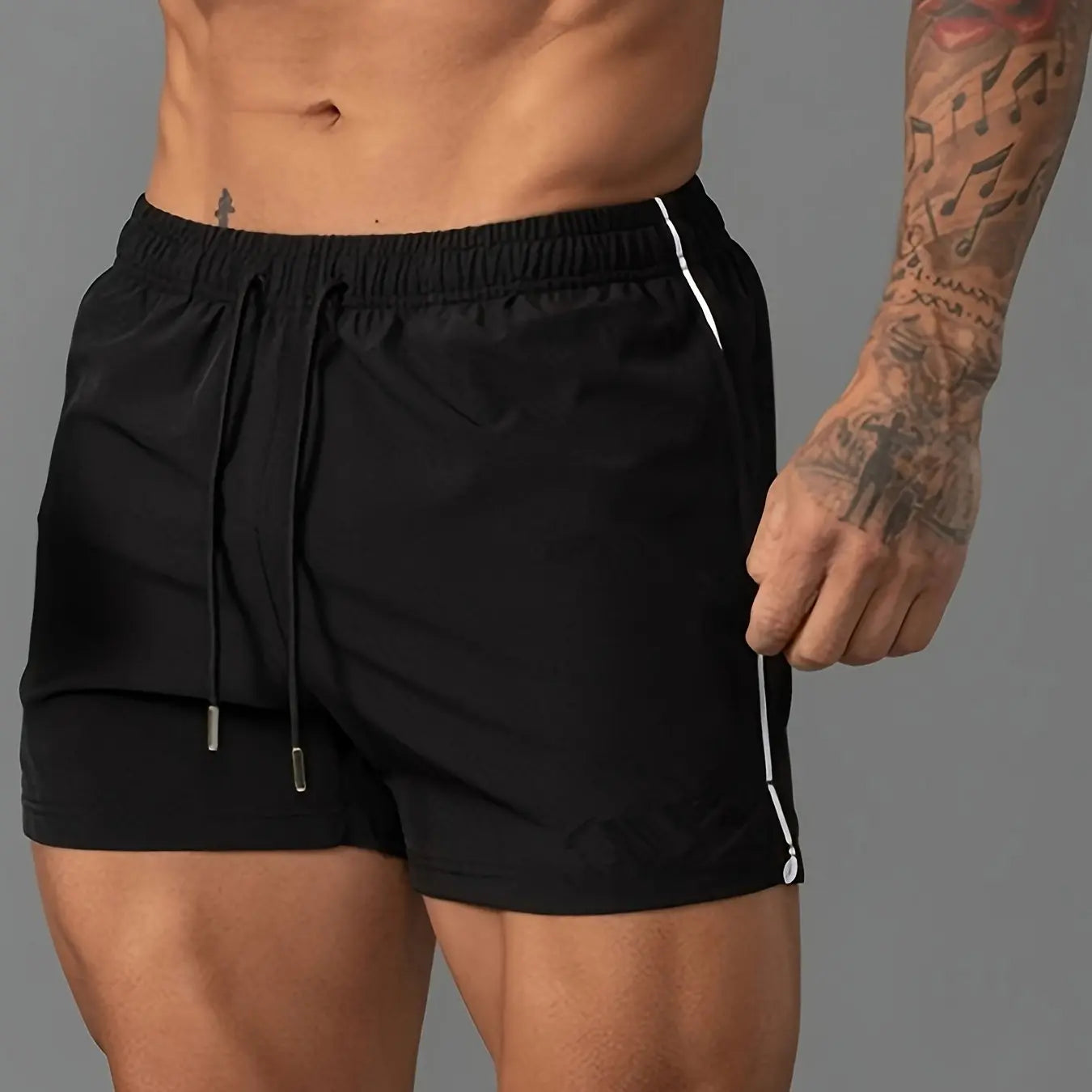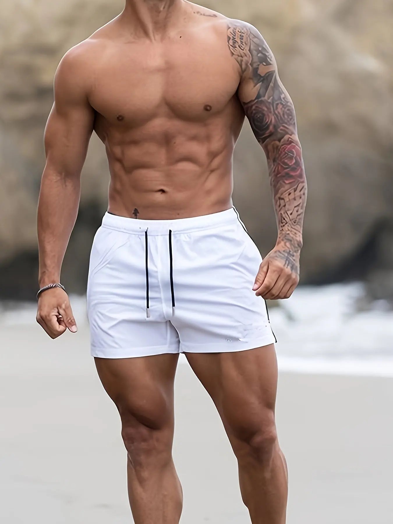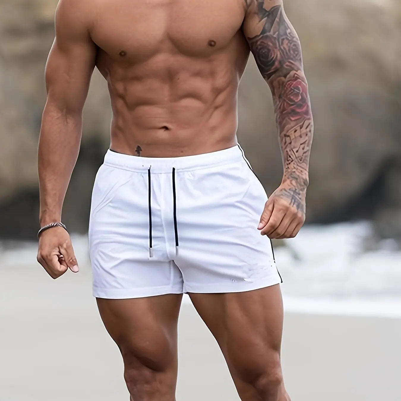 Mens Quick-Dry Solid Shorts with Pockets - Comfortable Drawstring Elastic Waist for Running, Fitness, Training - Stylish Loose Fit