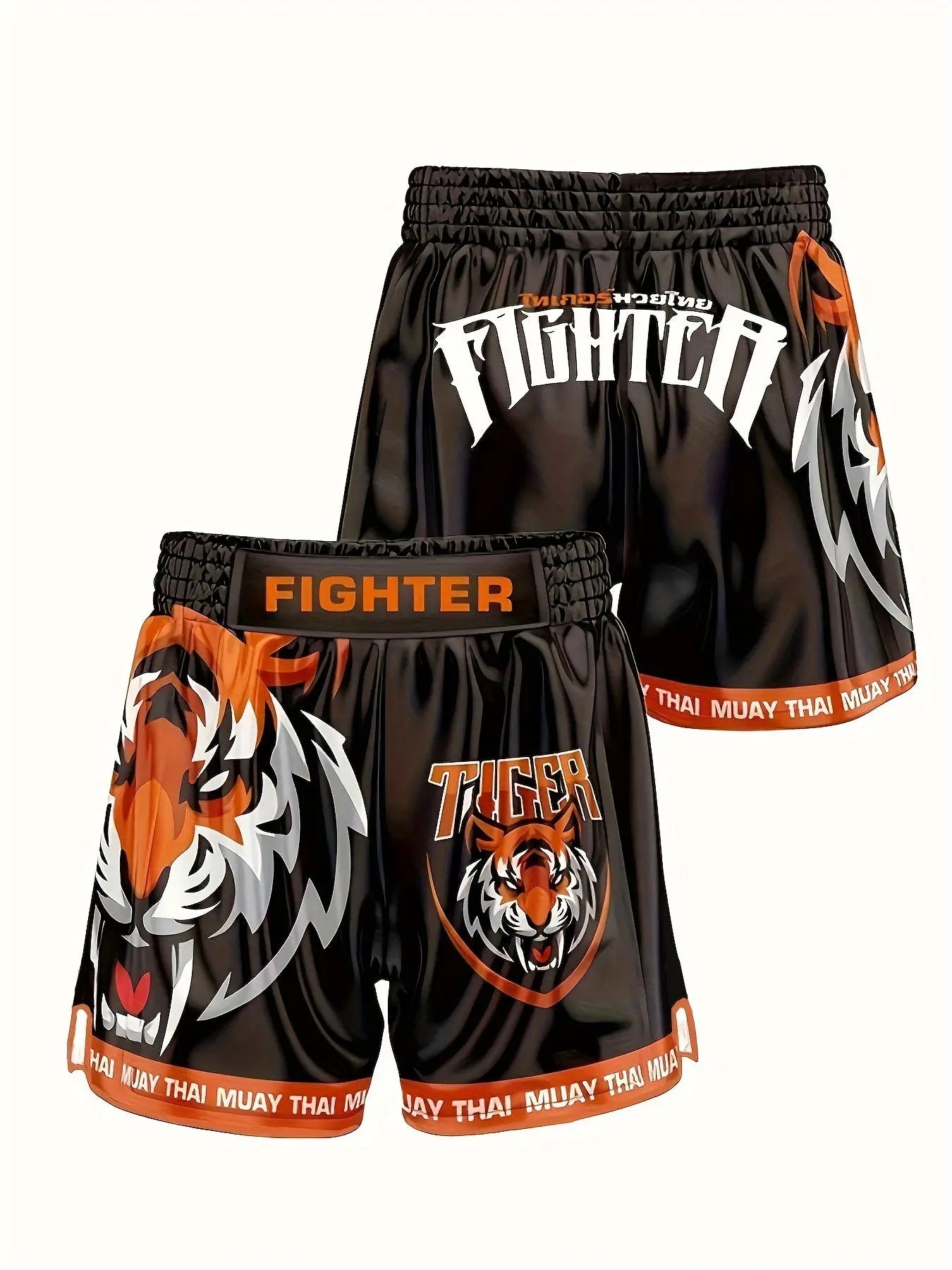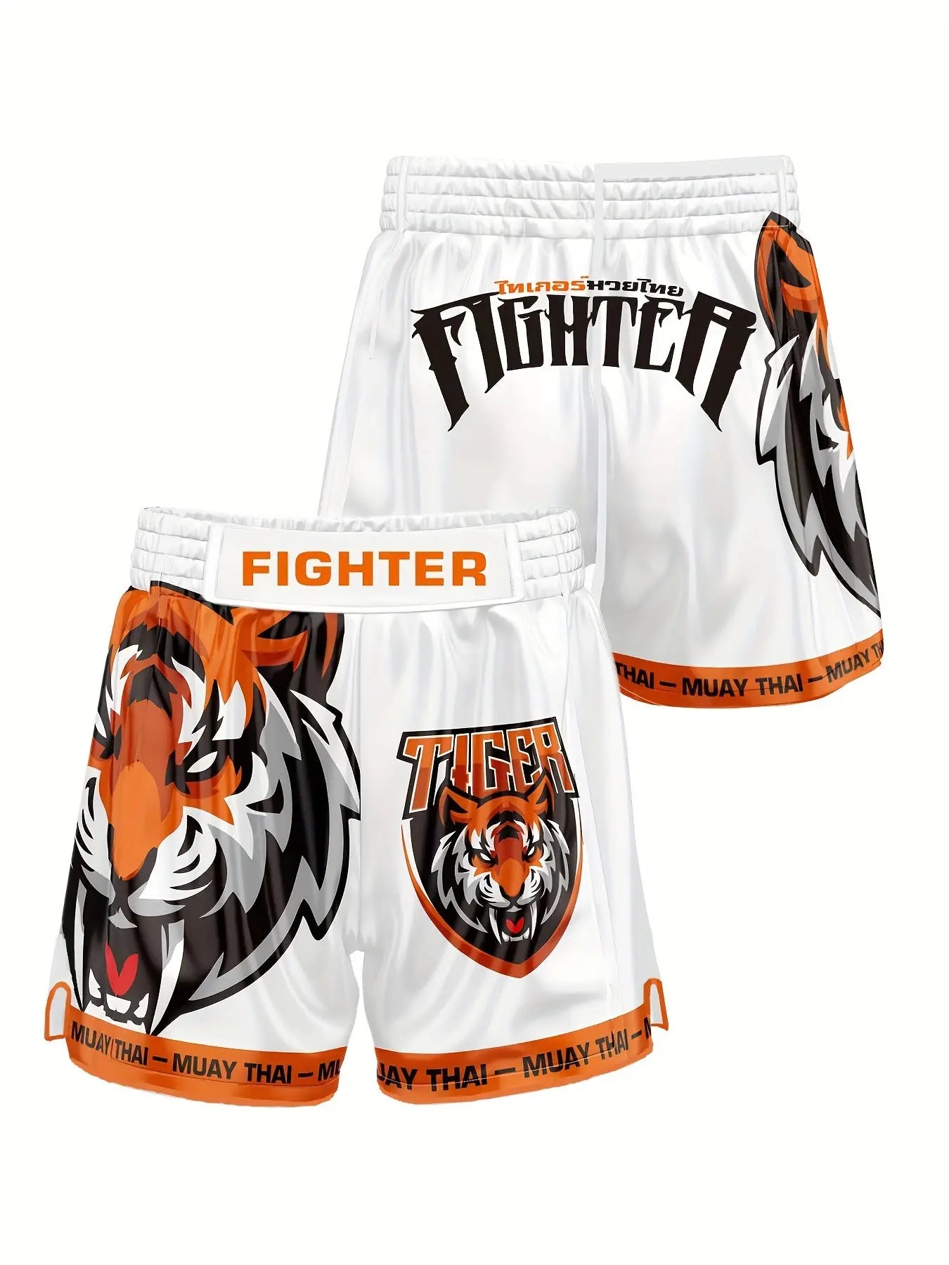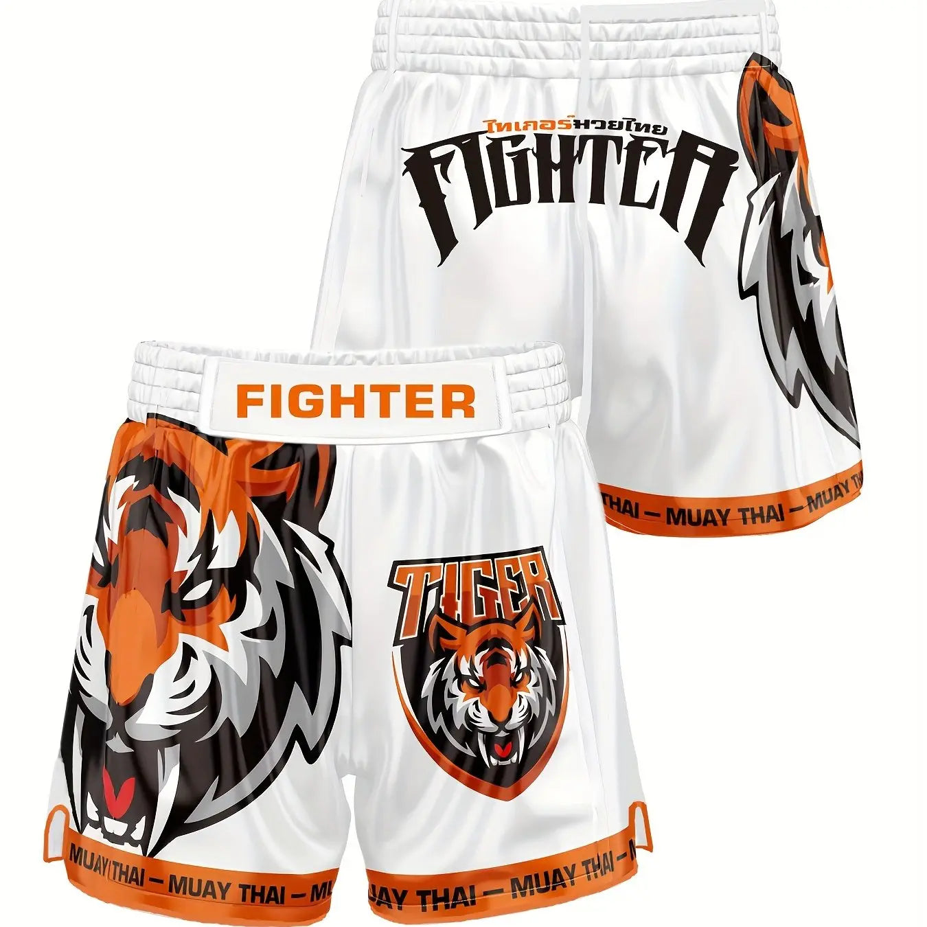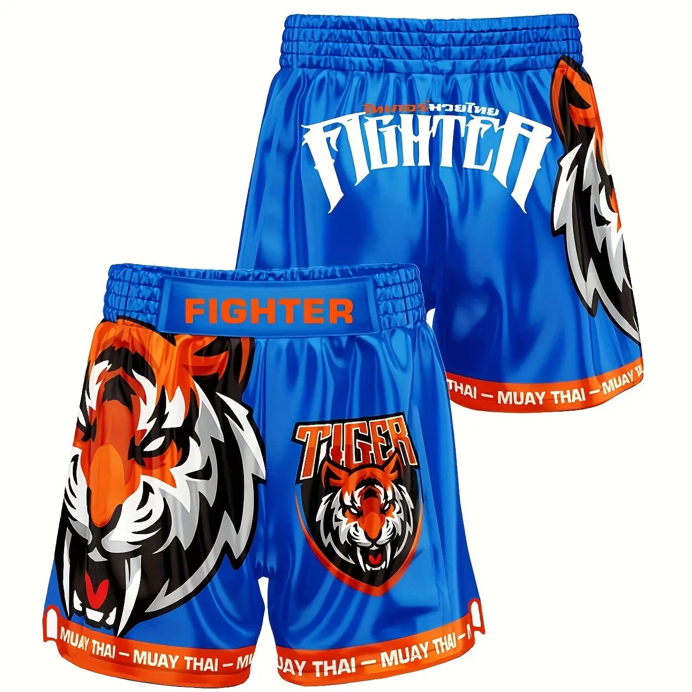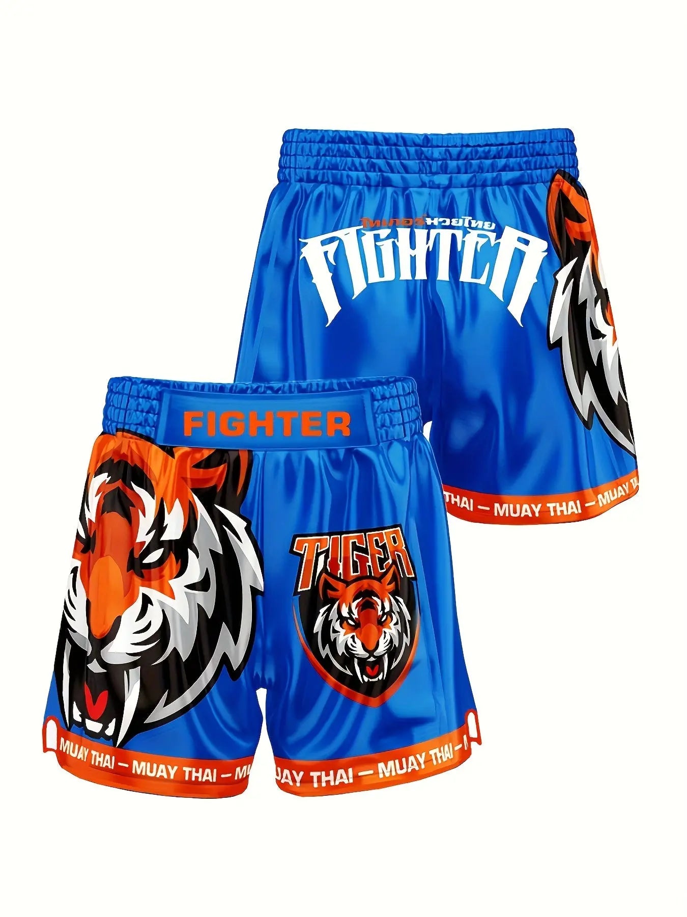 Mens Tiger Warrior Muay Thai Training Shorts - Quick-Dry, Lightweight, Comfortable, Medium Stretch, Cartoon Patterned, Split Design, Regular Fit, Polyester Combat Sports Shorts for Men, Teen, and Universal - Ideal for Sports, Martial Arts, Running, Traini