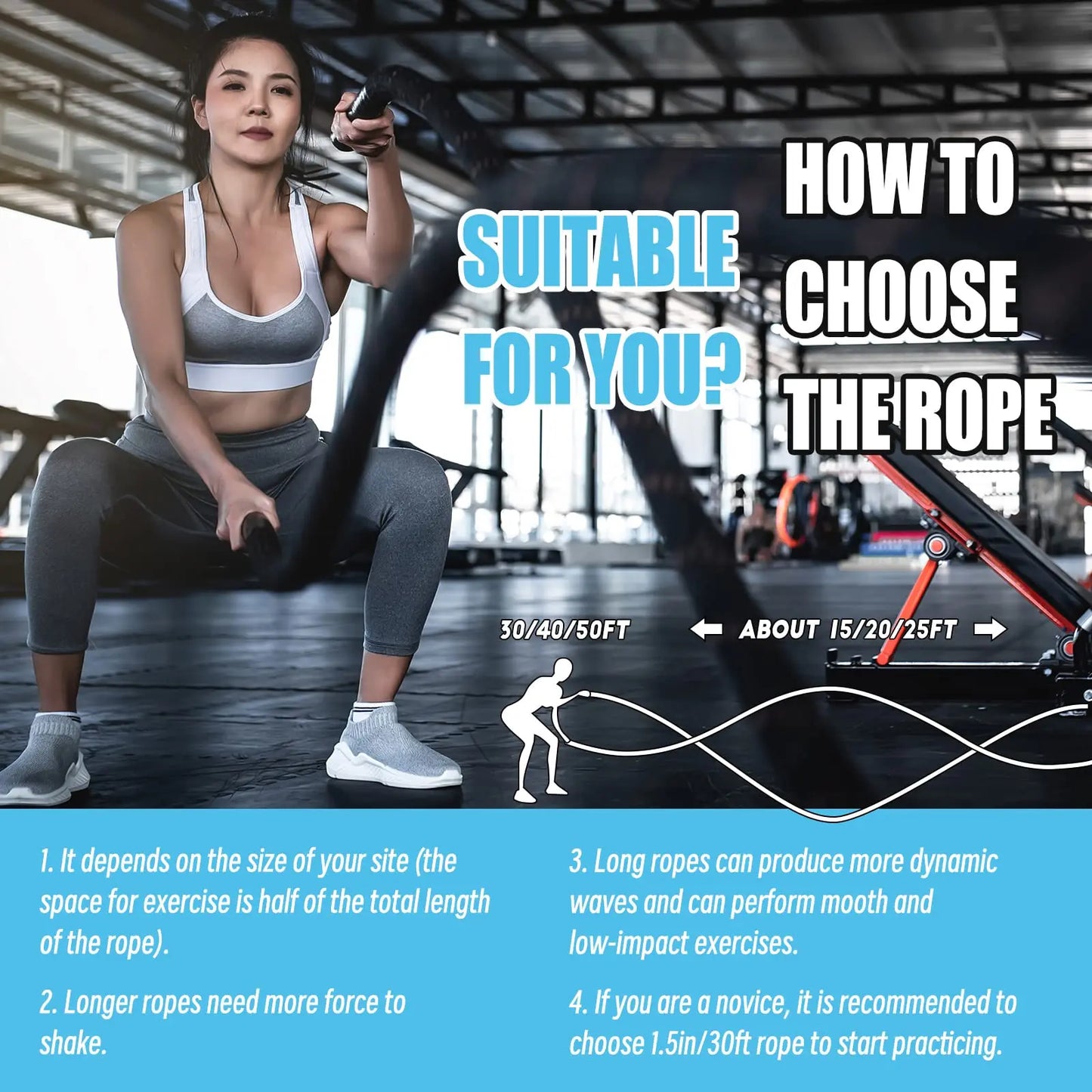 Users can achieve grappler throws, Burpee slams, alternate wave/lateral lunge combo, single arm plank waves, double wave/jump squat combo, etc. with our battle ropes, which helps you get a killer conditioning workout and tone your abs, arms, shoulders as well as enhance your body flexibility and coordination.