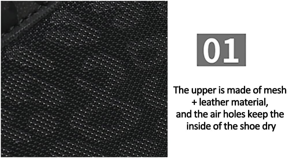 - ★ Shoe upper design: The upper is made of mesh + leather, with air holes to keep the inside of the shoe dry.