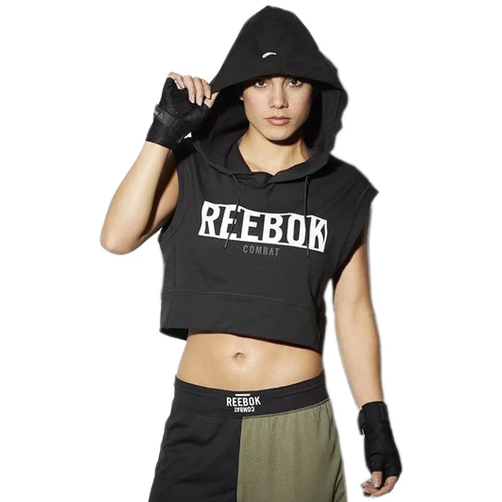 Sleeveless and with a crew neck, this hoodie is designed for optimal range of motion and ventilation. The drawstrings allow for a customizable fit, so you can adjust the hoodie to your liking. A prominent Reebok Combat logo adorns the front, and an additional Reebok block and logo embellish the back, making a powerful statement about your commitment to fitness.