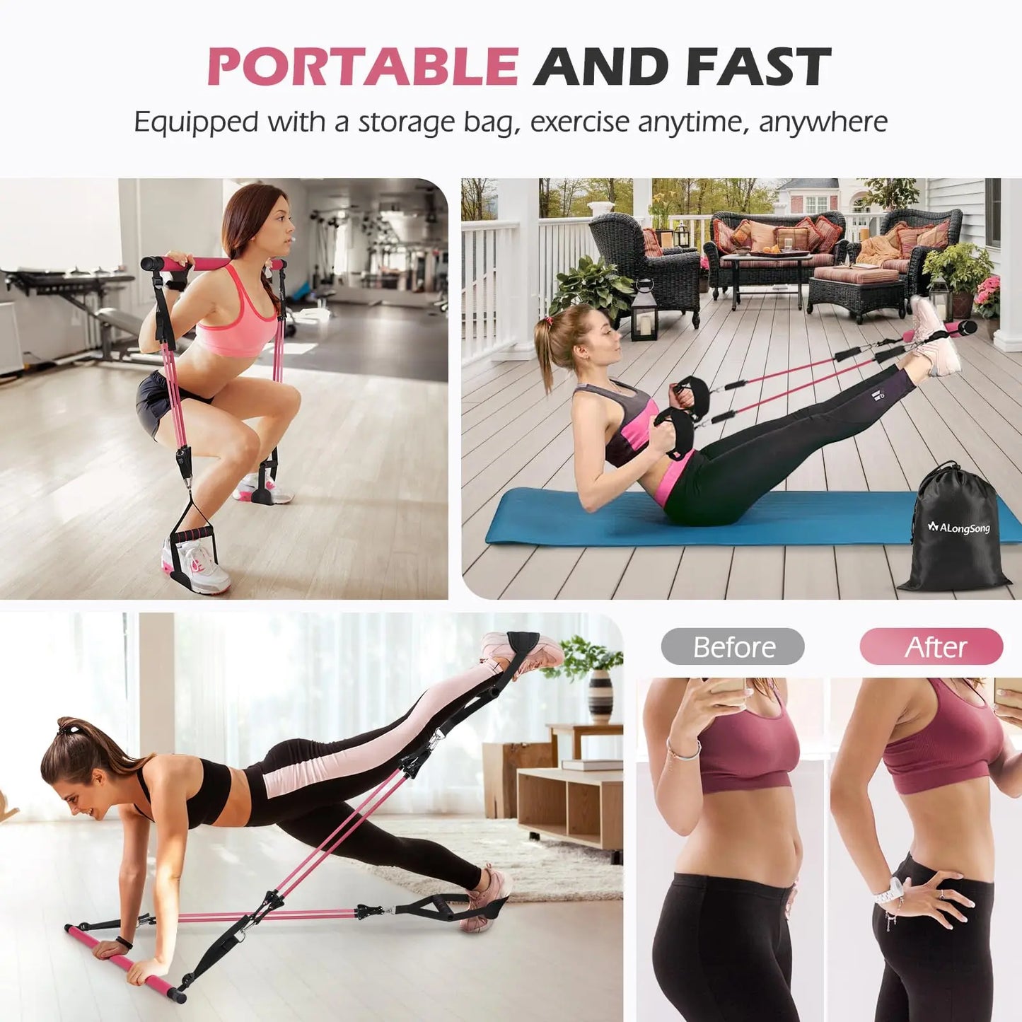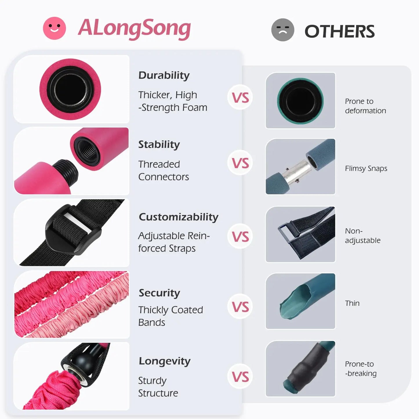 - 【Full Body Fitness Workouts Equipment】: ALongSong Pilates Bar Kit is designed as all-in-one workout equipment, helping sculpt your dream body, exercise muscles, and reduce weight. The pilates bar kit can be used for various types of common core exercises including resistance bands, stretching, barbells, rowing machines, weightlifting, yoga kits, and other fitness equipment, which means that without going to the gym, now you can get the same results right from your home or anywhere you like.