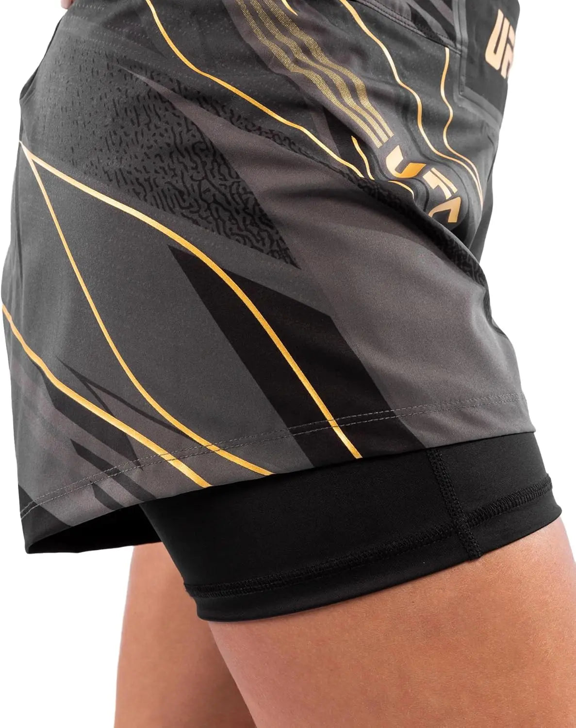 The short-fit Fight Night Fightshorts are an extremely lightweight "mid-thigh" short. The tighter fit utilizes thermo-glued side slits to provide total freedom of movement, both standing and on the ground. The Fight Night Fightshorts adopt an elastic waistband to ensure the shorts remain perfectly in place during even the most intense of exchanges. The Venum Fight Night Fightshorts are the result of a collaboration between the world's leading mixed martial arts organization, the UFC, and Venum, an iconic and influential brand in MMA since 2005. The Fight Night series is the main range of the VENUM x UFC collection. These sleek outfits will be worn by the fighters throughout all UFC events.